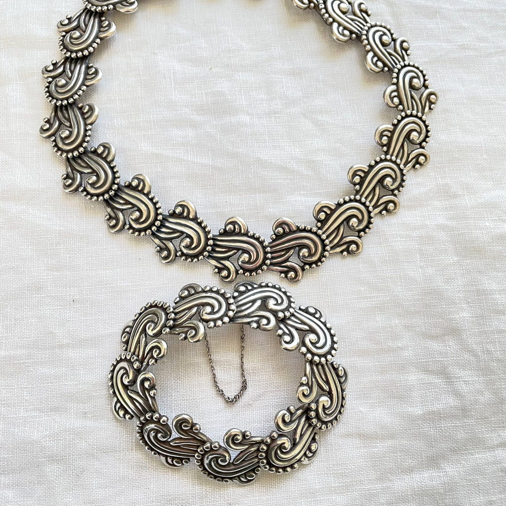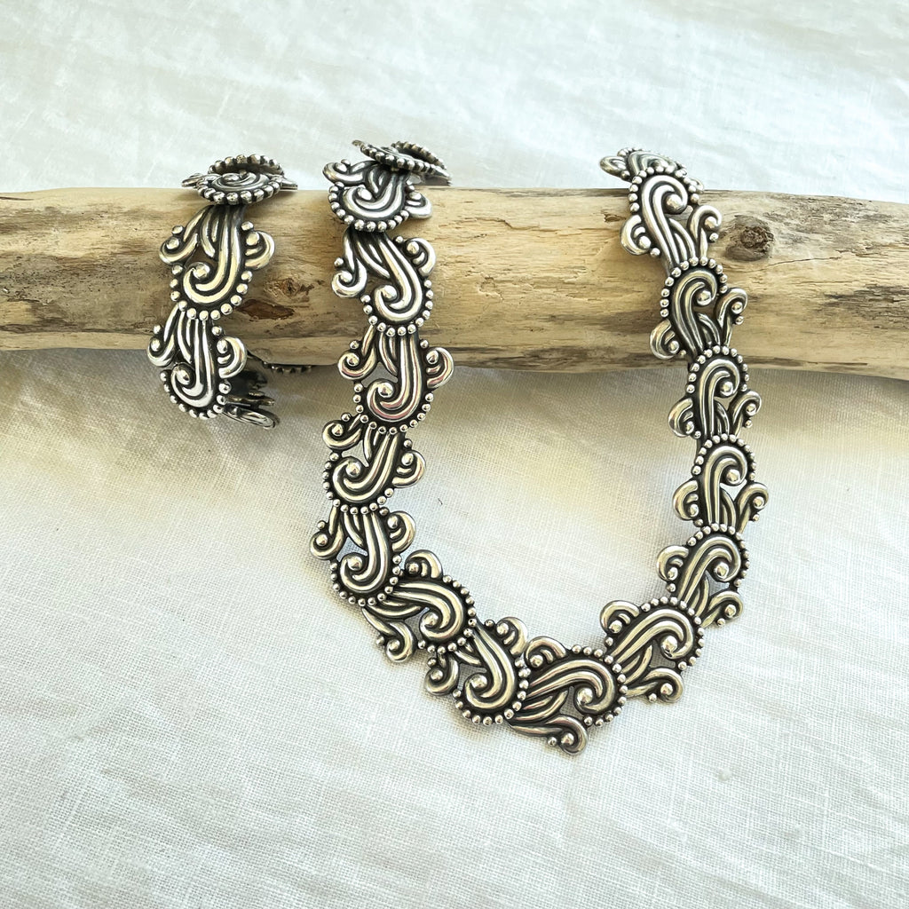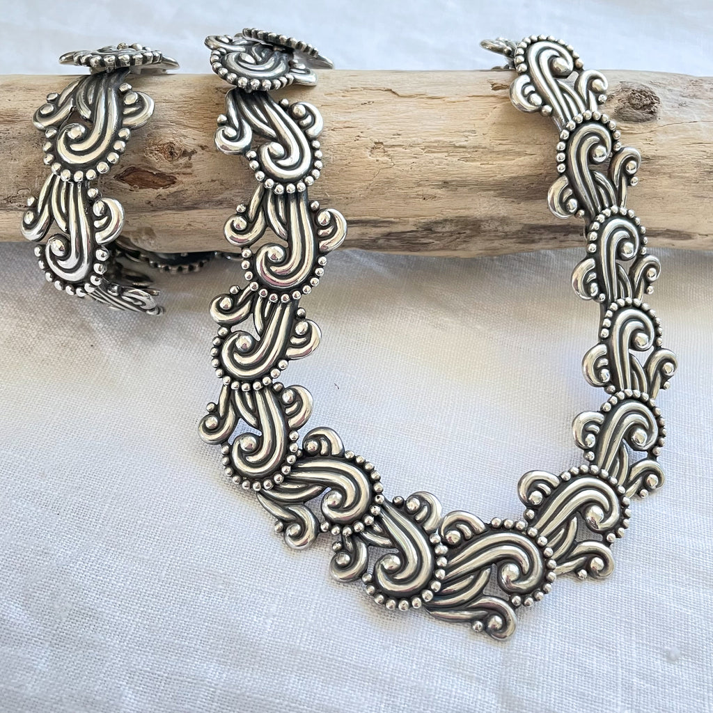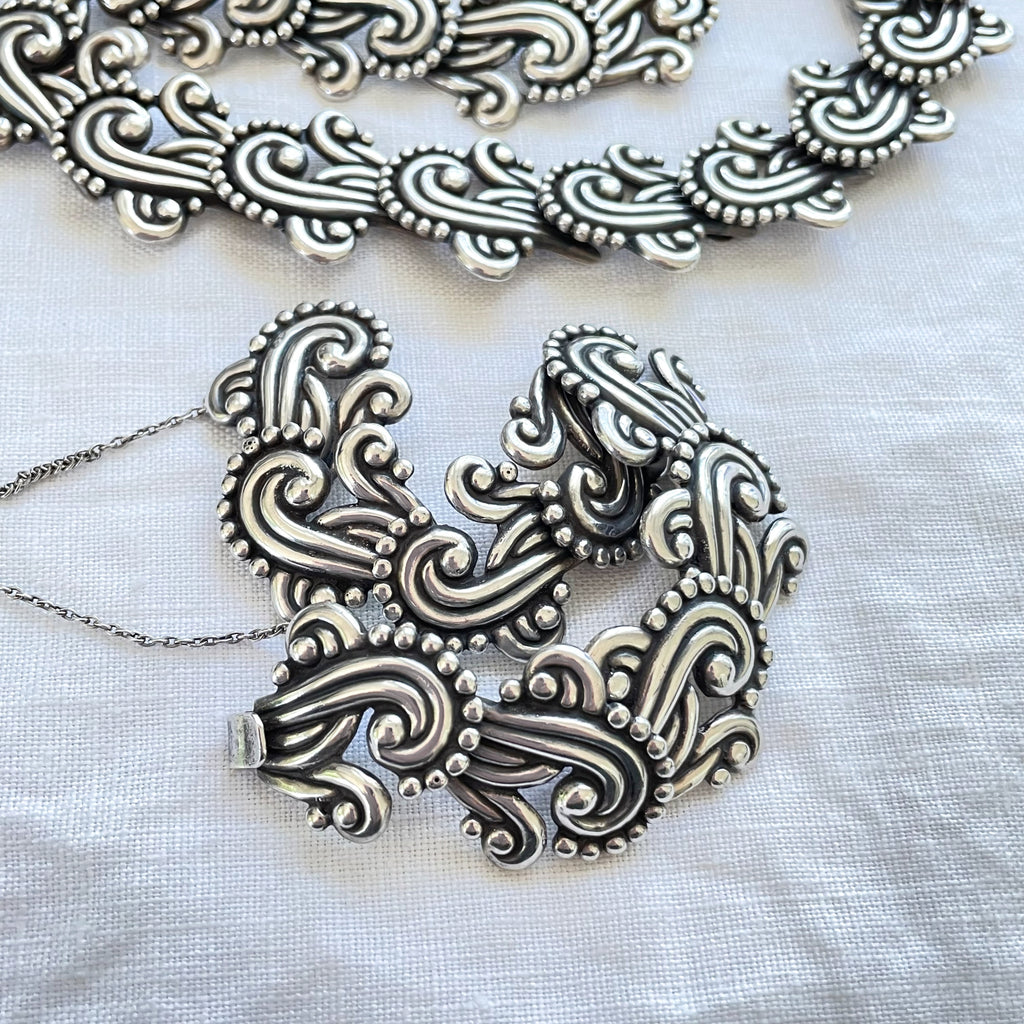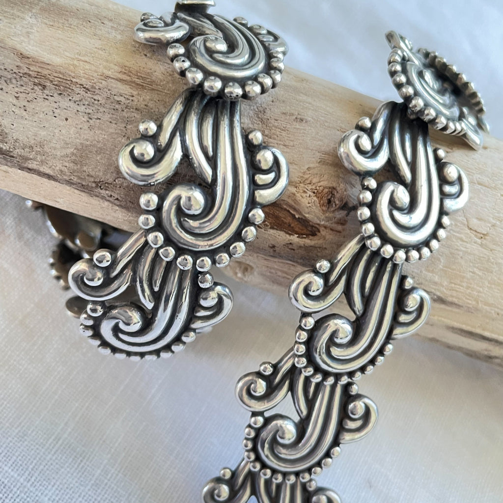 Vintage Los Castillo sterling silver necklace bracelet set.