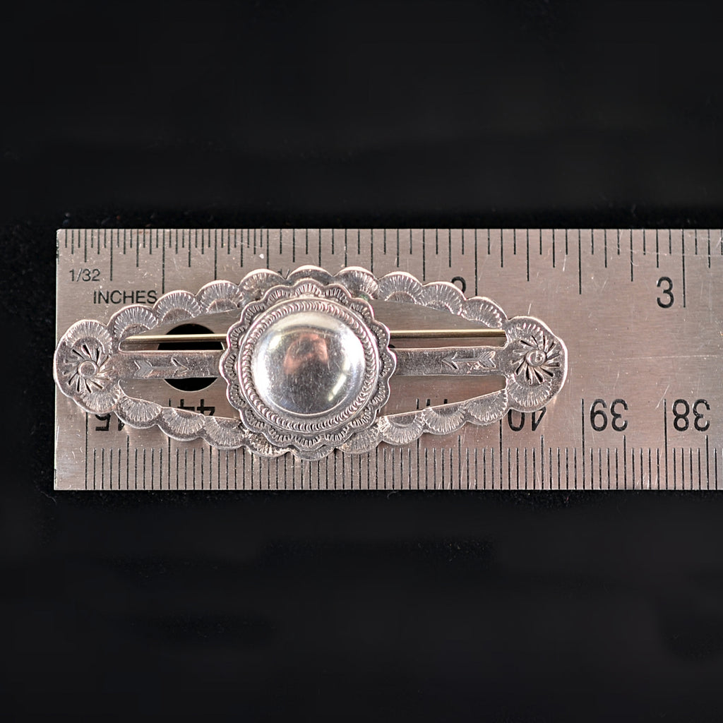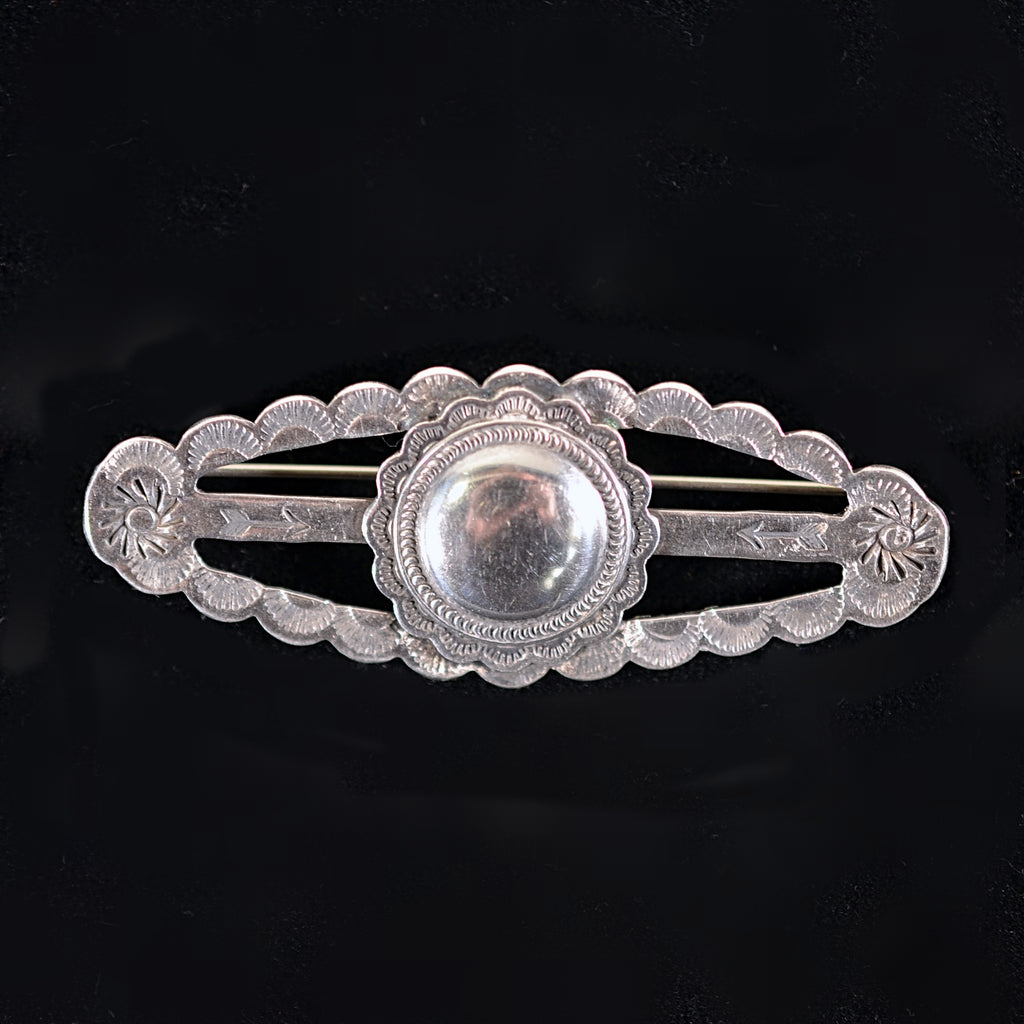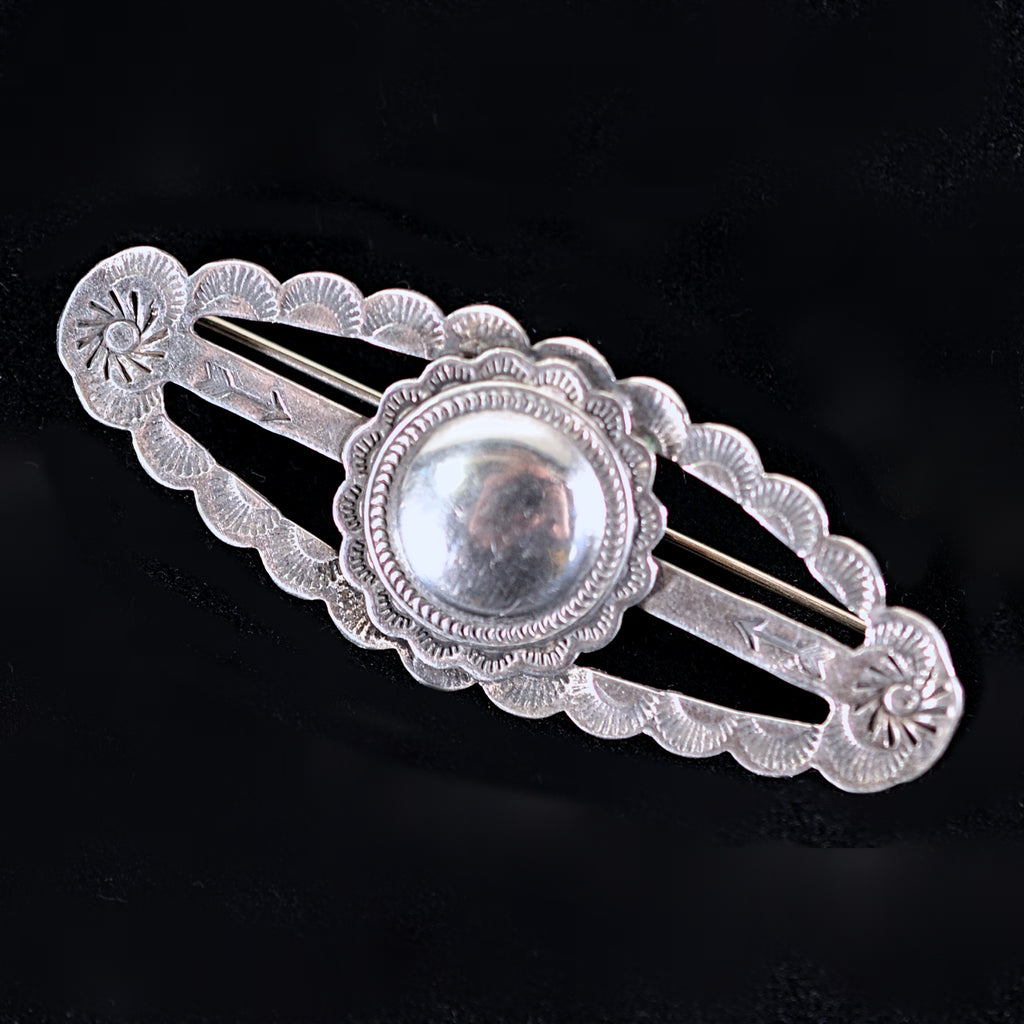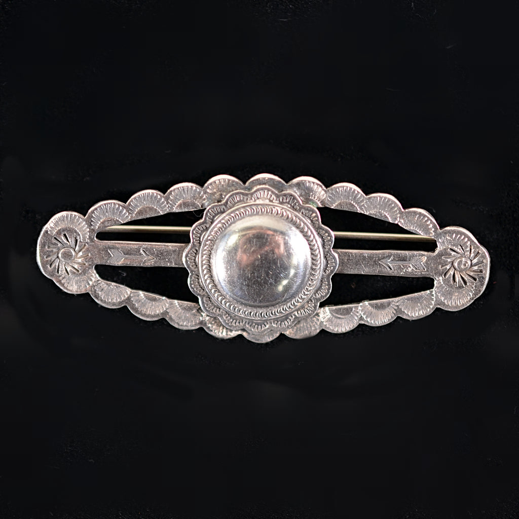 Beautiful 1930s Sterling Silver brooch in the concho style.