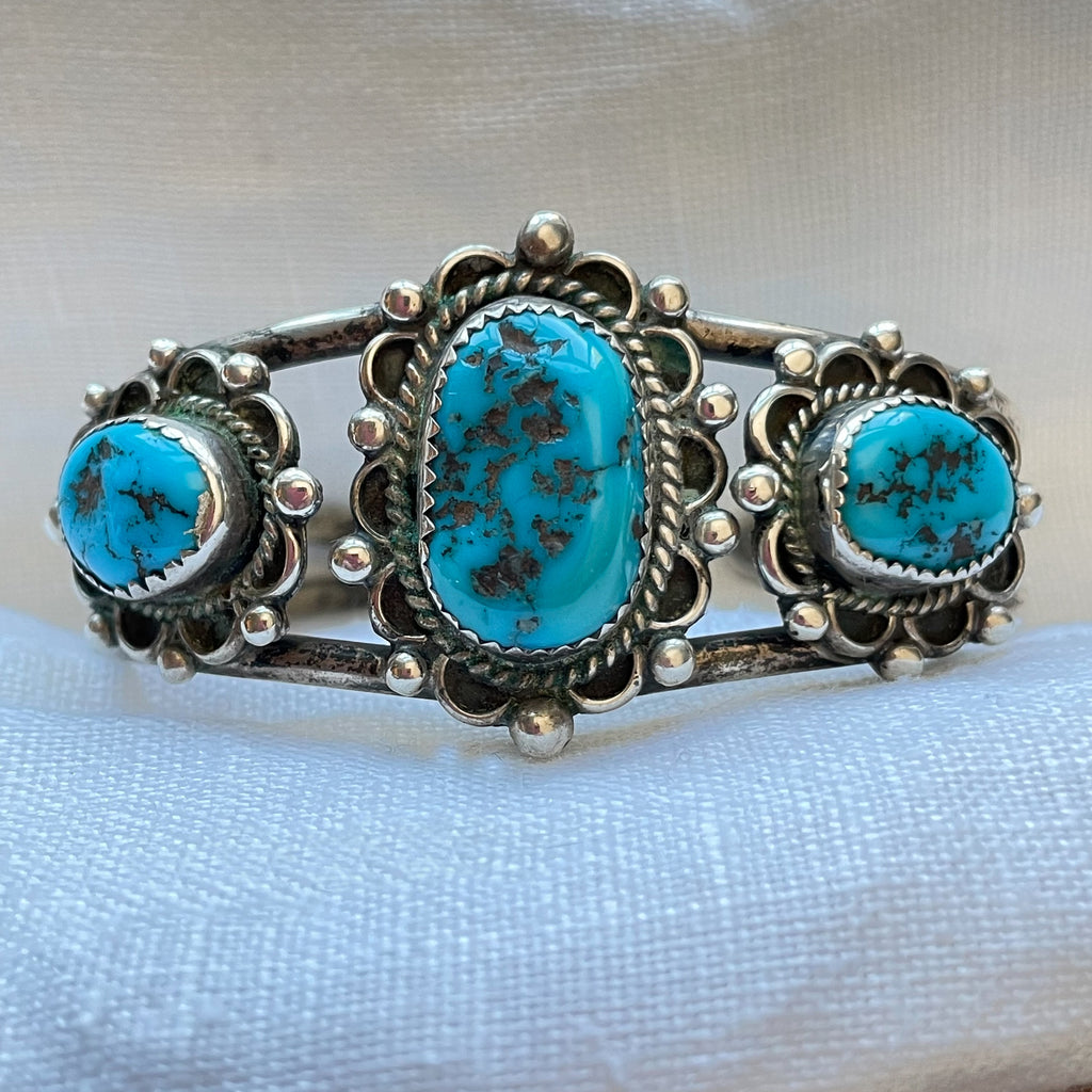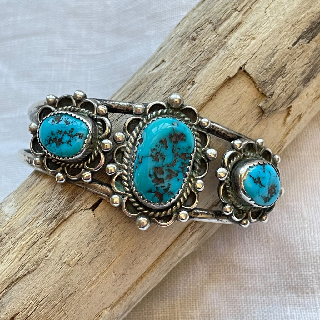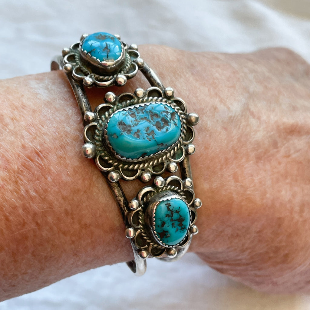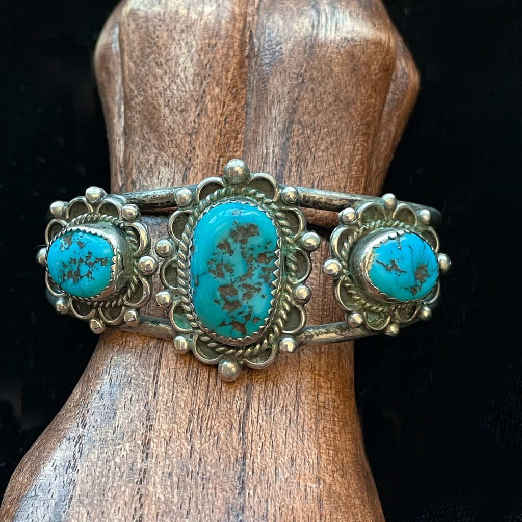 Beautiful old pawn Kingman nugget Turquoise silver bracelet.