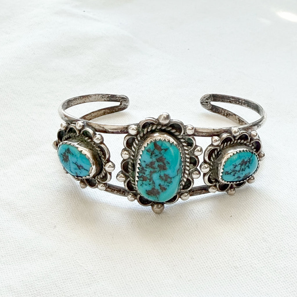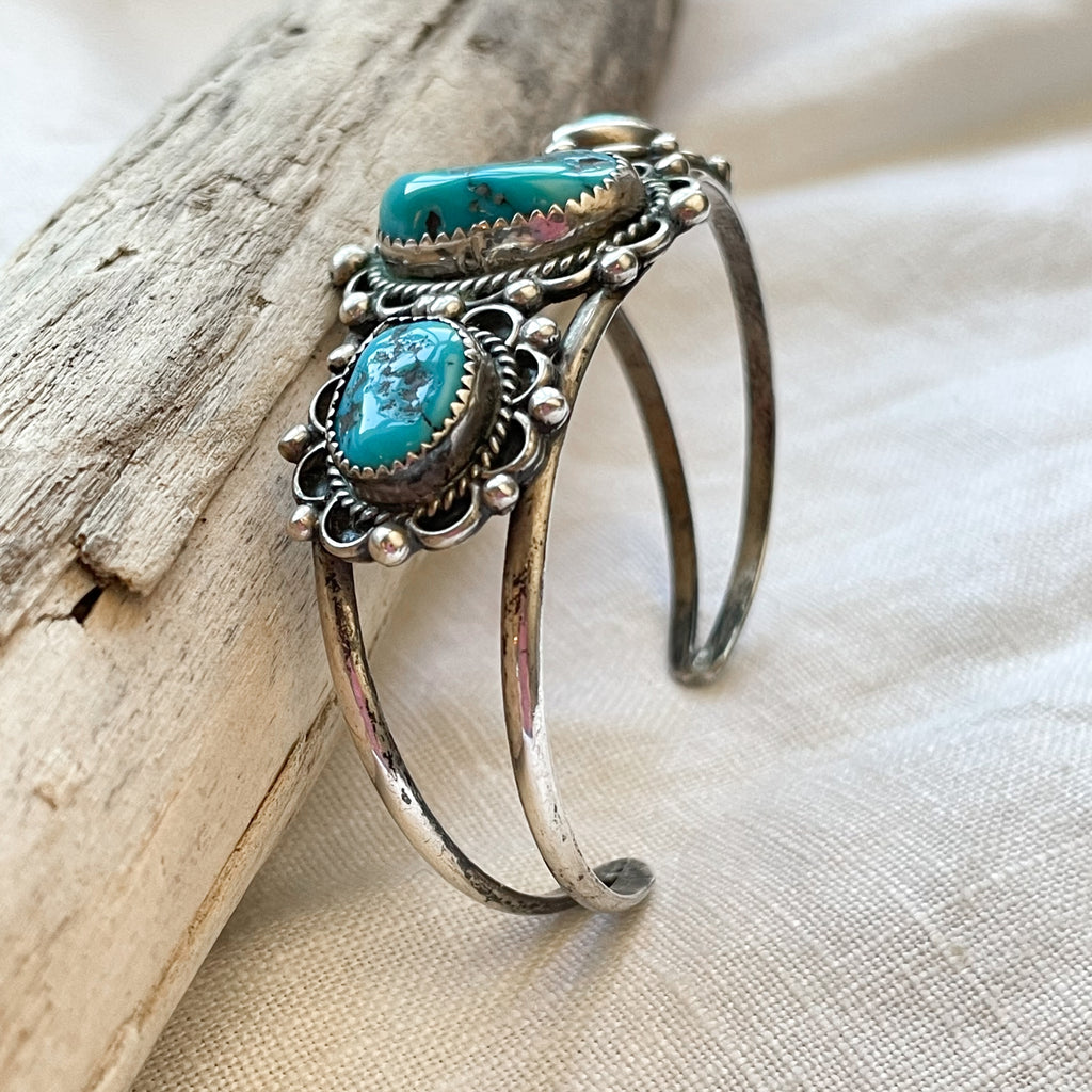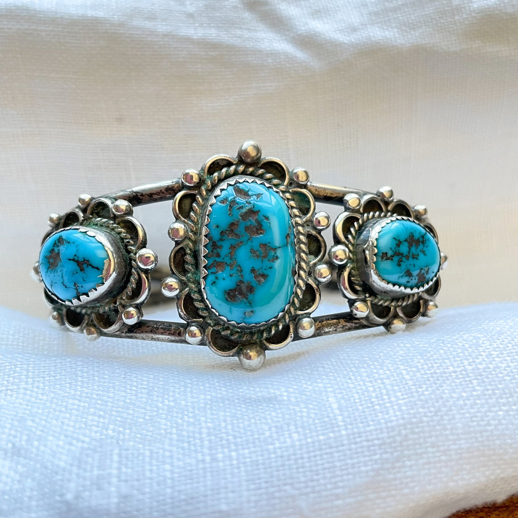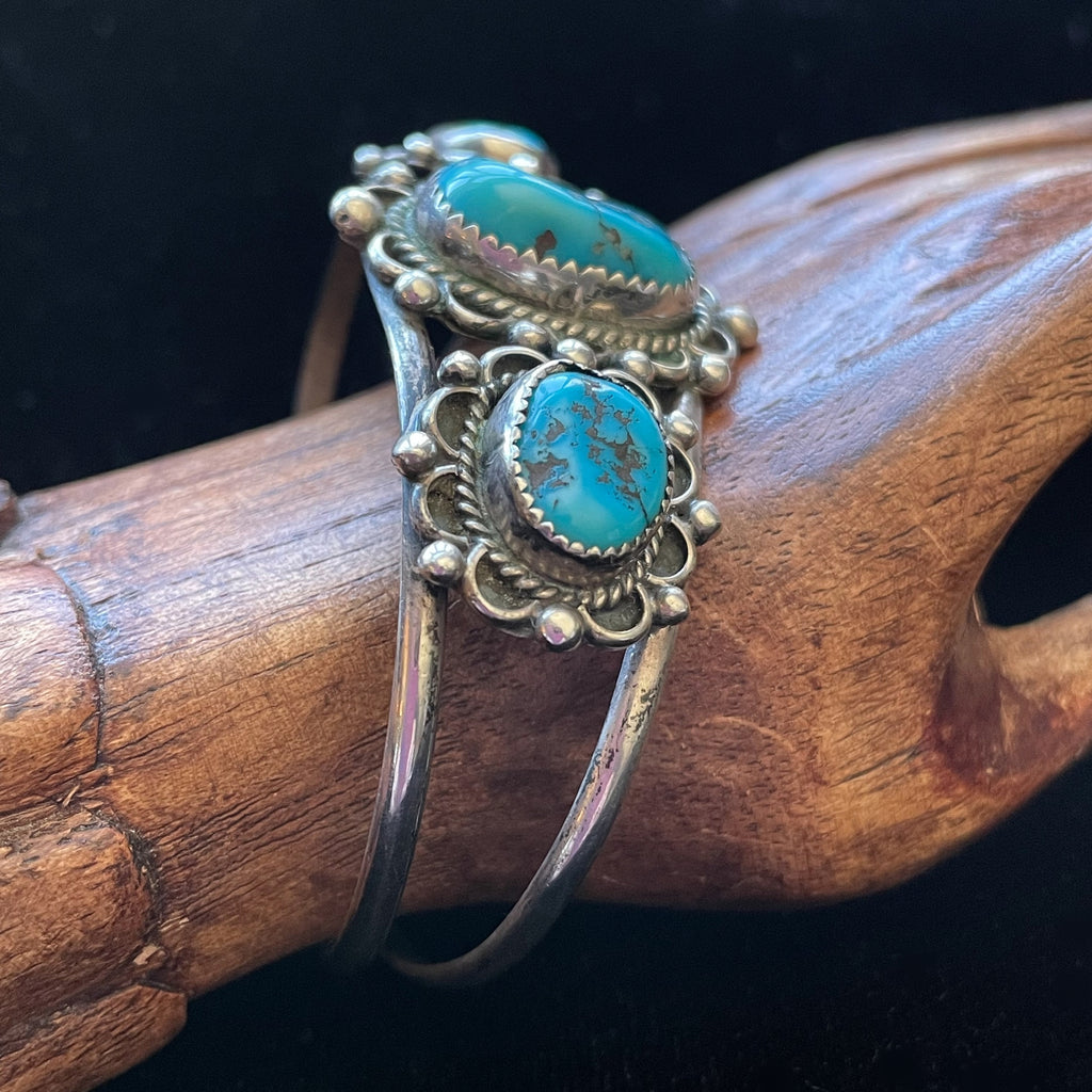 Beautiful old pawn Kingman nugget Turquoise silver bracelet.
