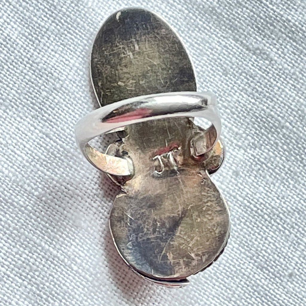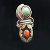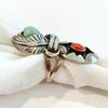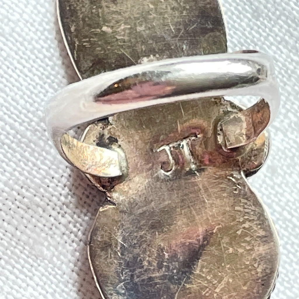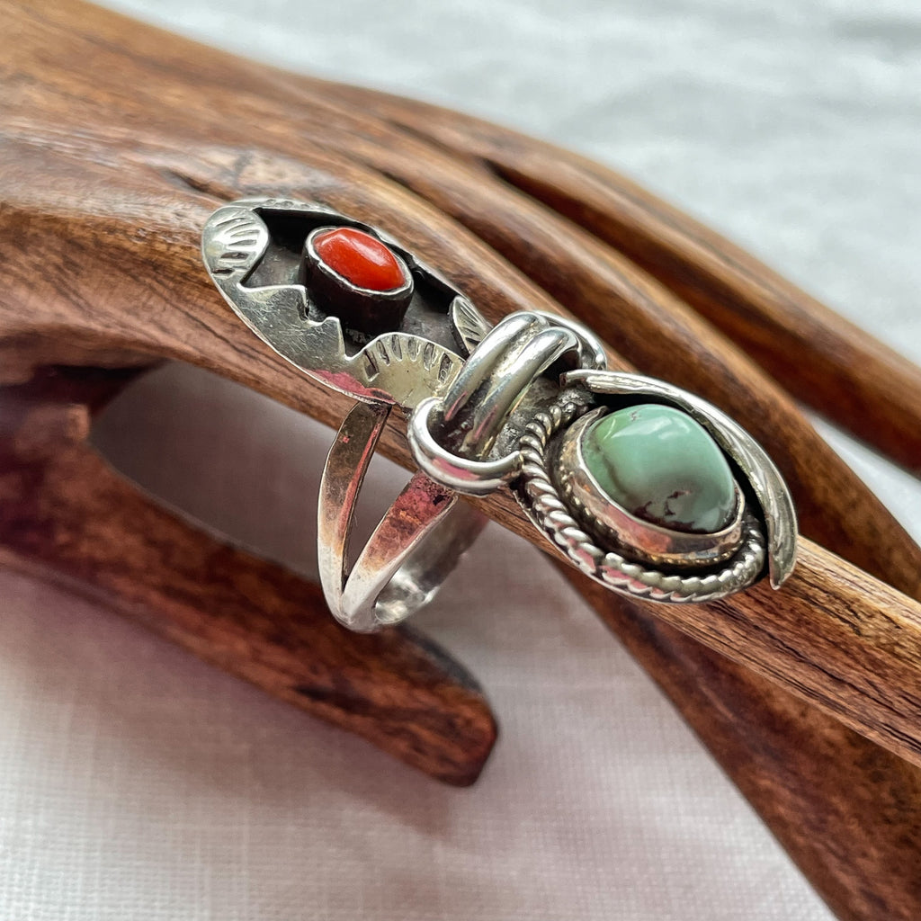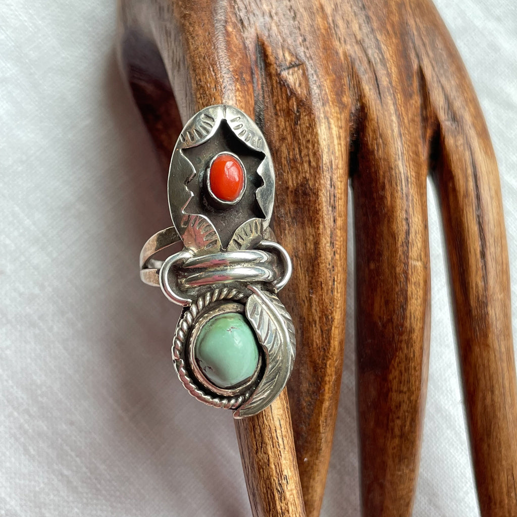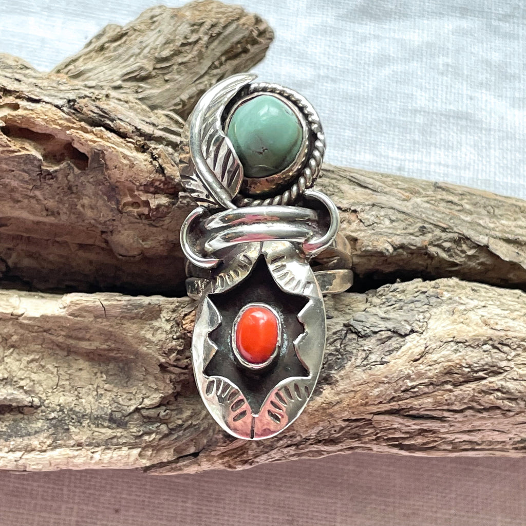 Vintage Navajo Native American Ring, Silver Turquoise Coral Signed JT
