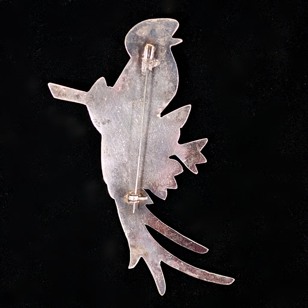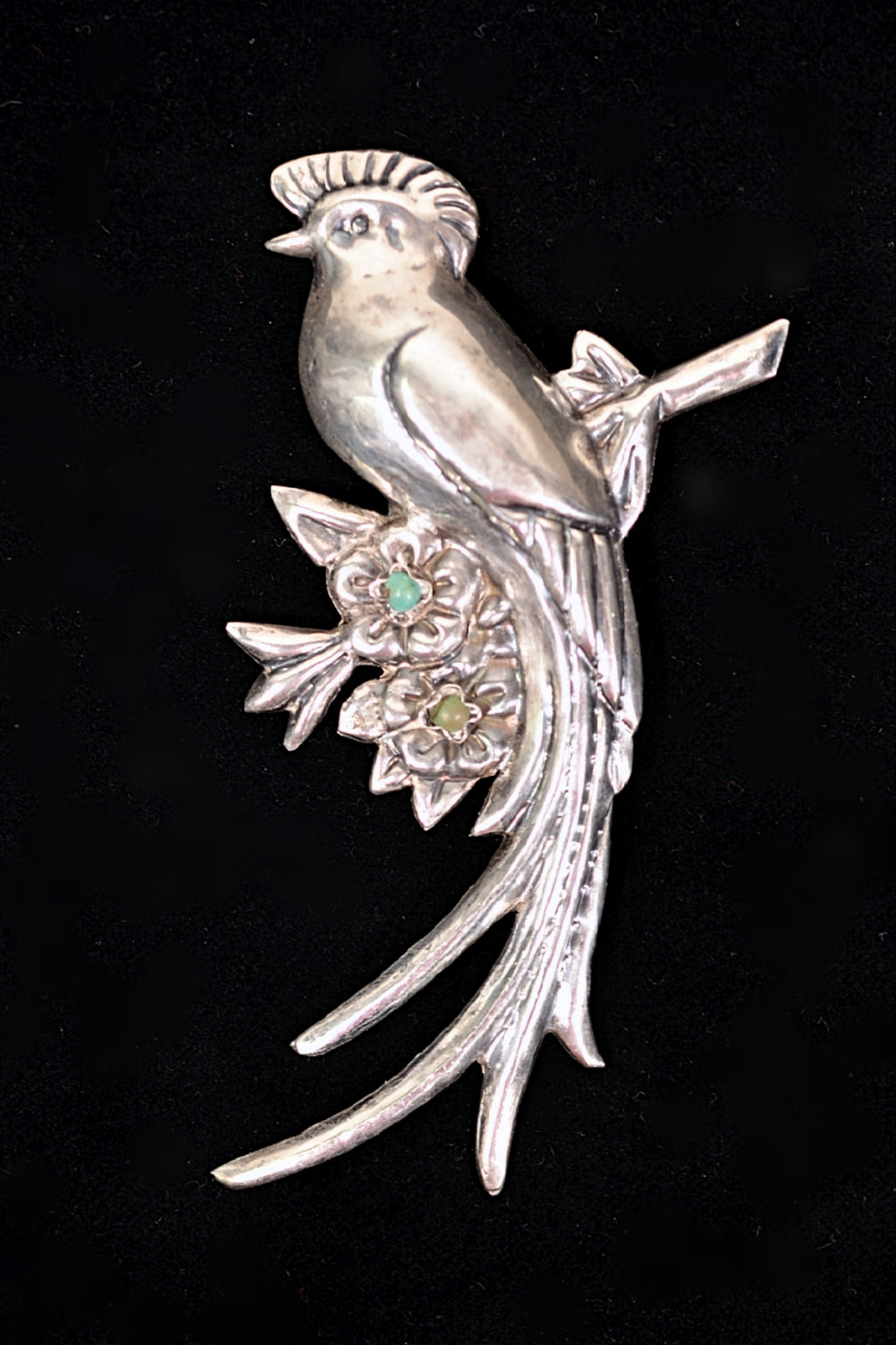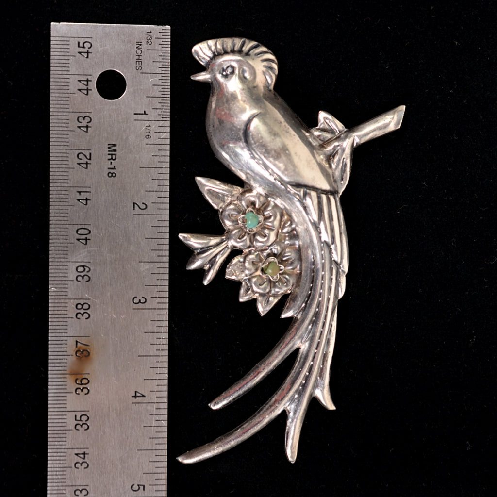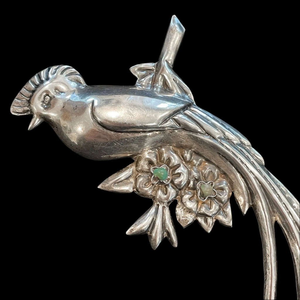 Lovely 1940s Mexican Sterling Silver large quetzal bird brooch.