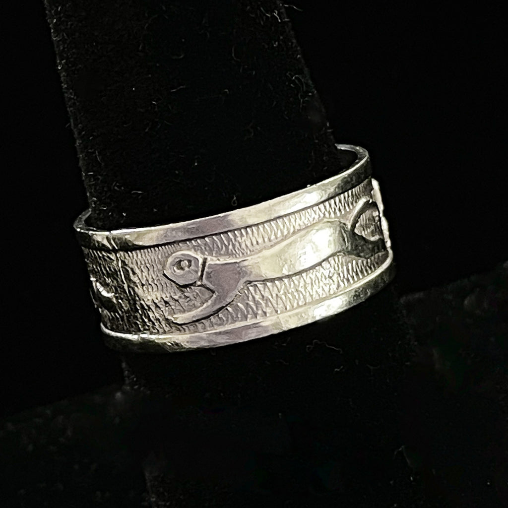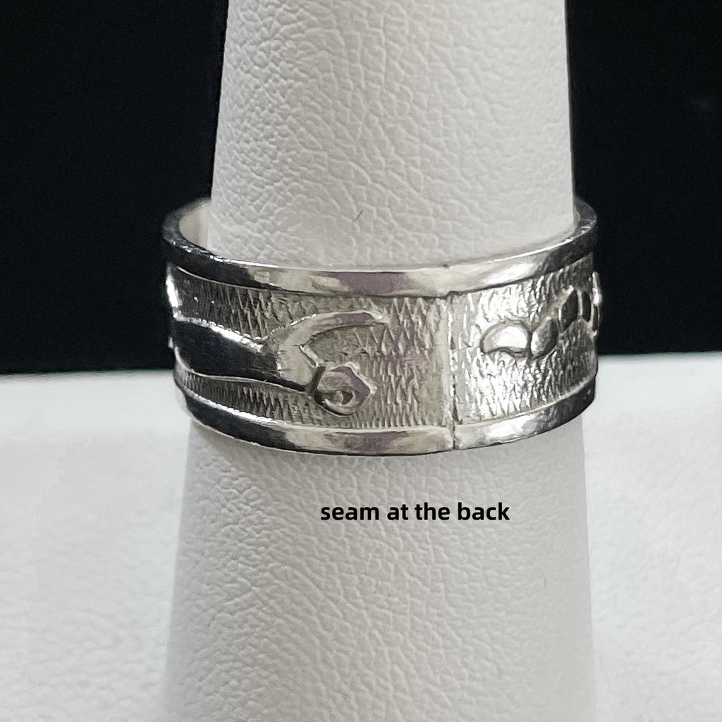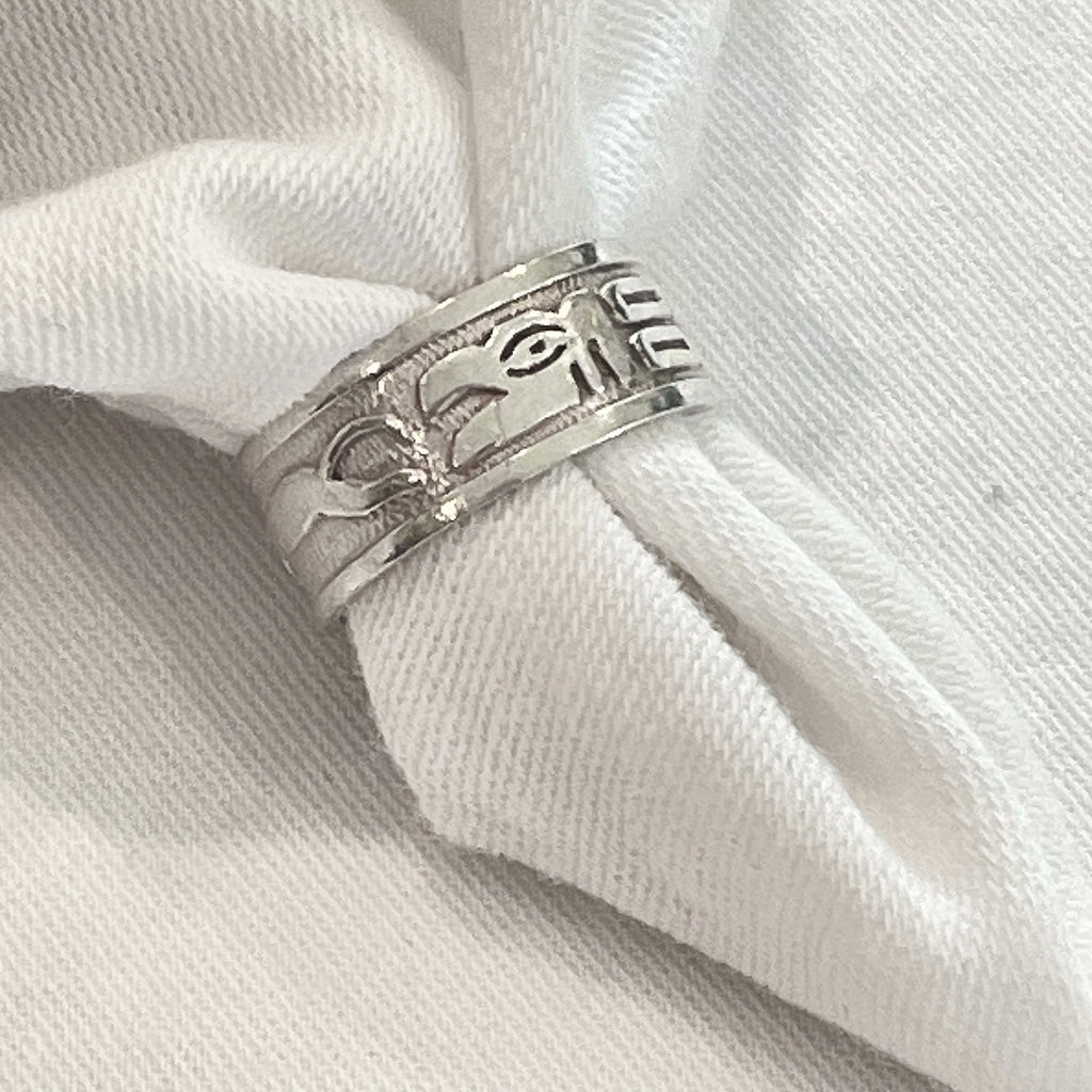 Vintage sterling silver band ring with all over southwestern Mayan pattern.