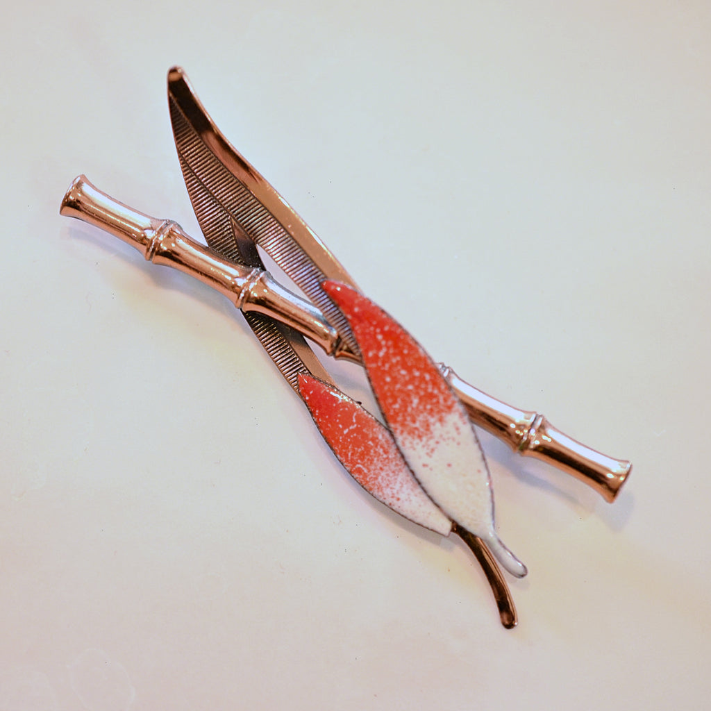 Rare vintage Matisse/Renoir bamboo brooch with leaf accents.
