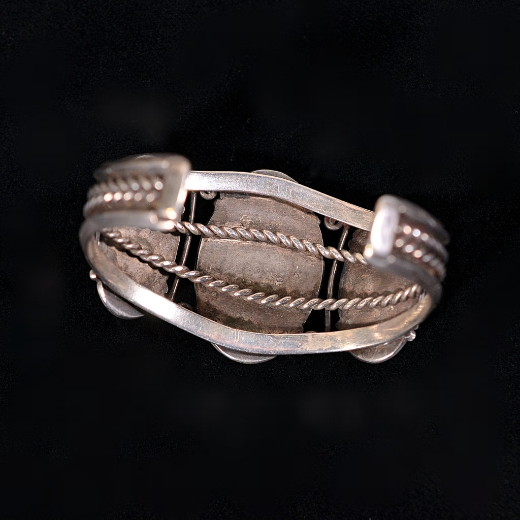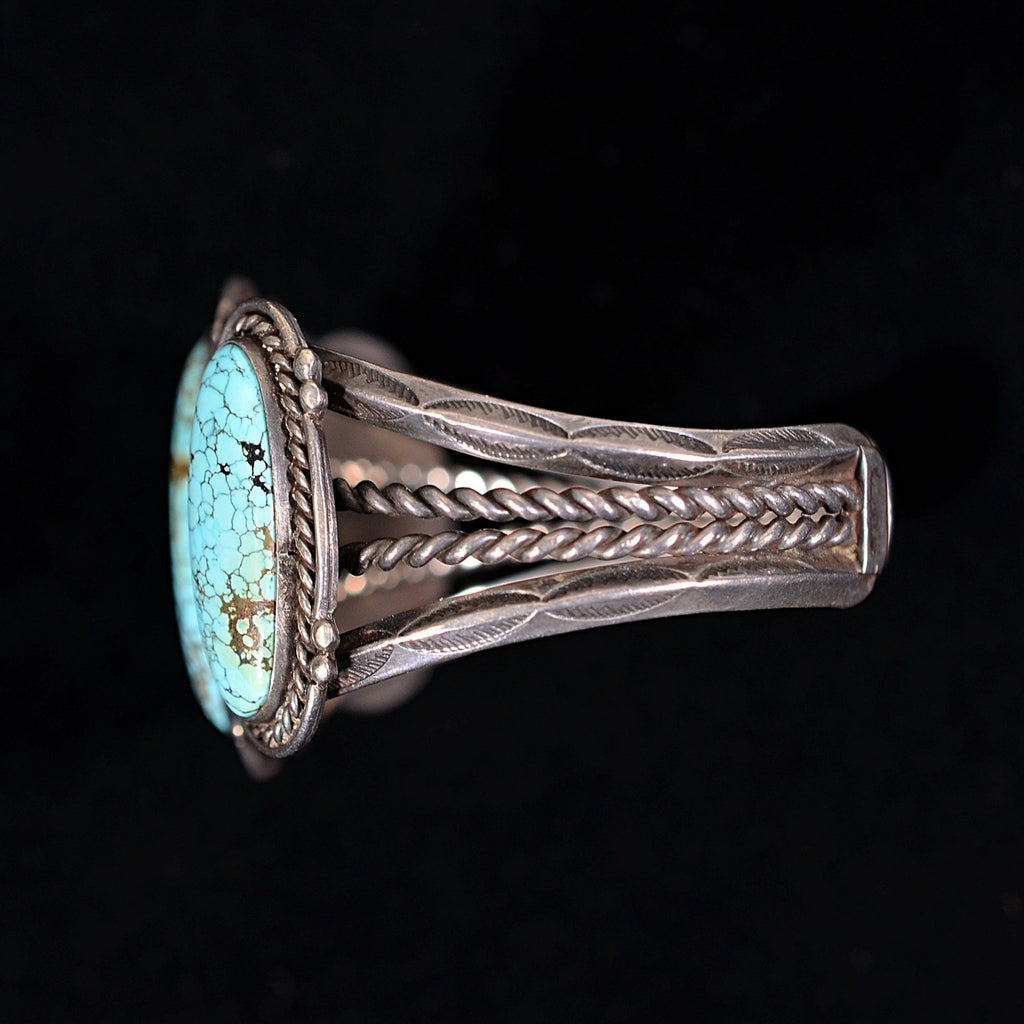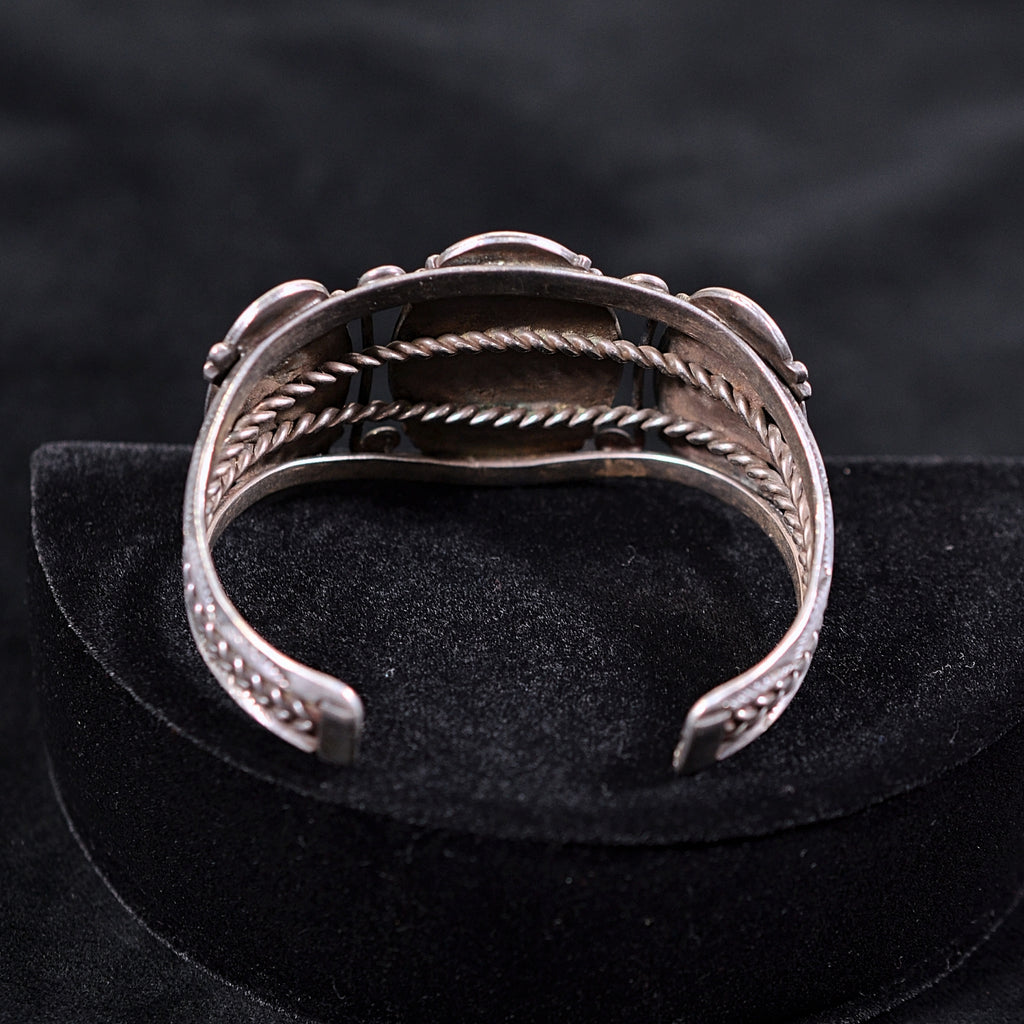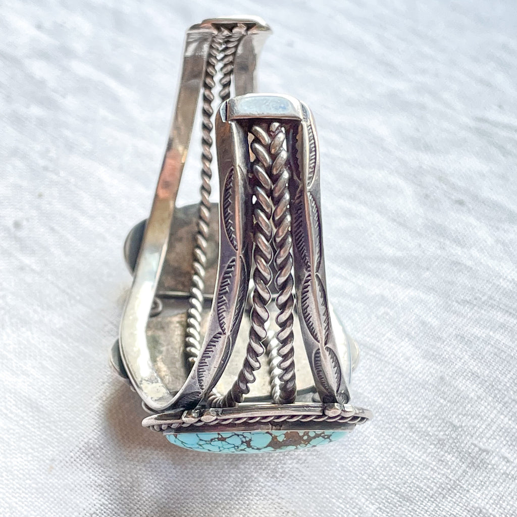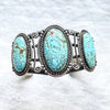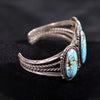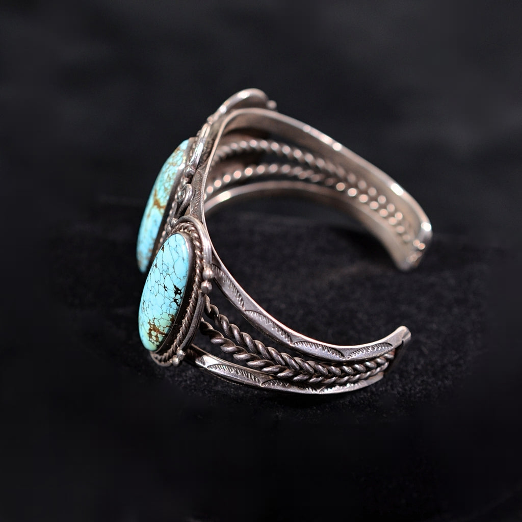 Vintage 1940s Native American cuff bracelet with 3 large oval #8 Turquoise stones.