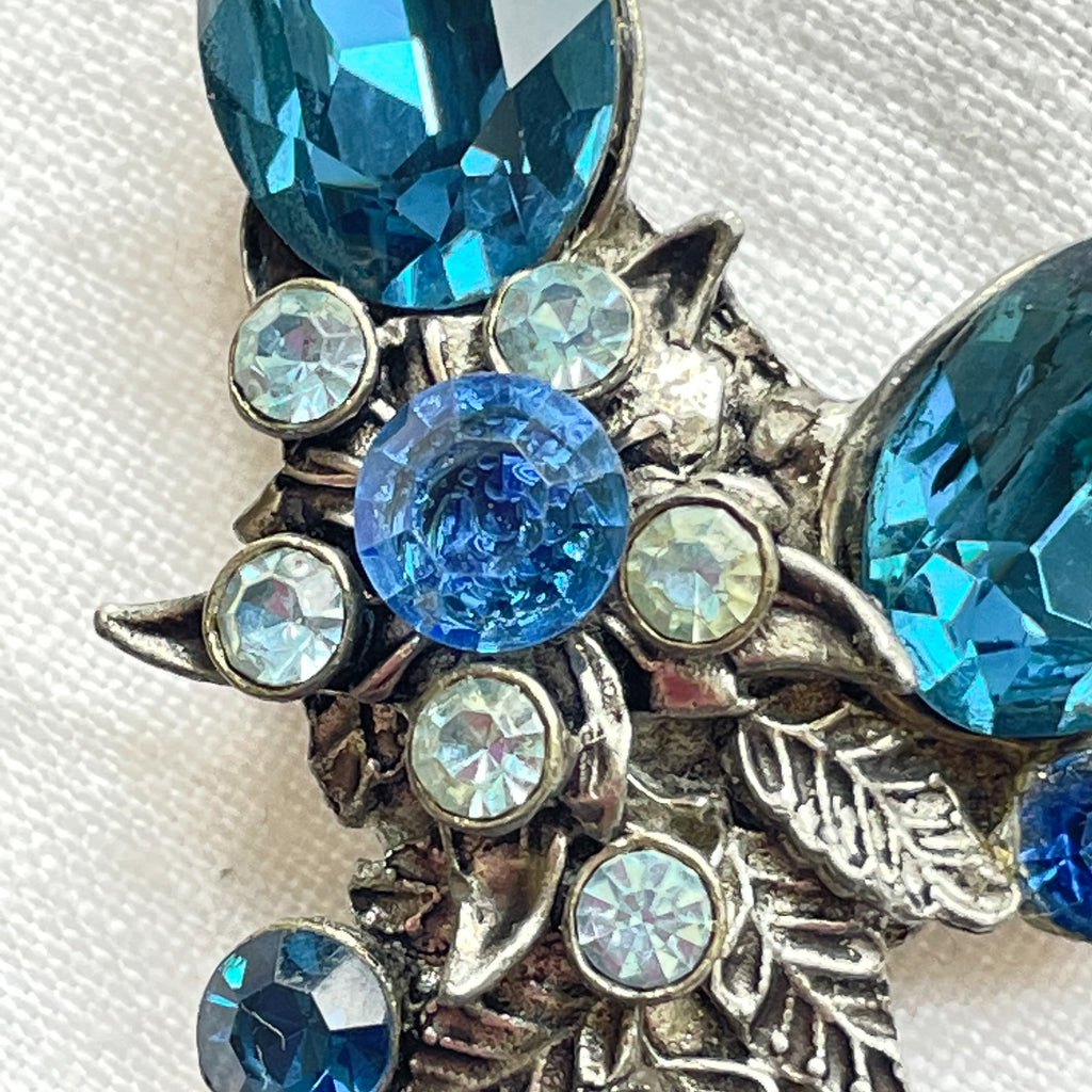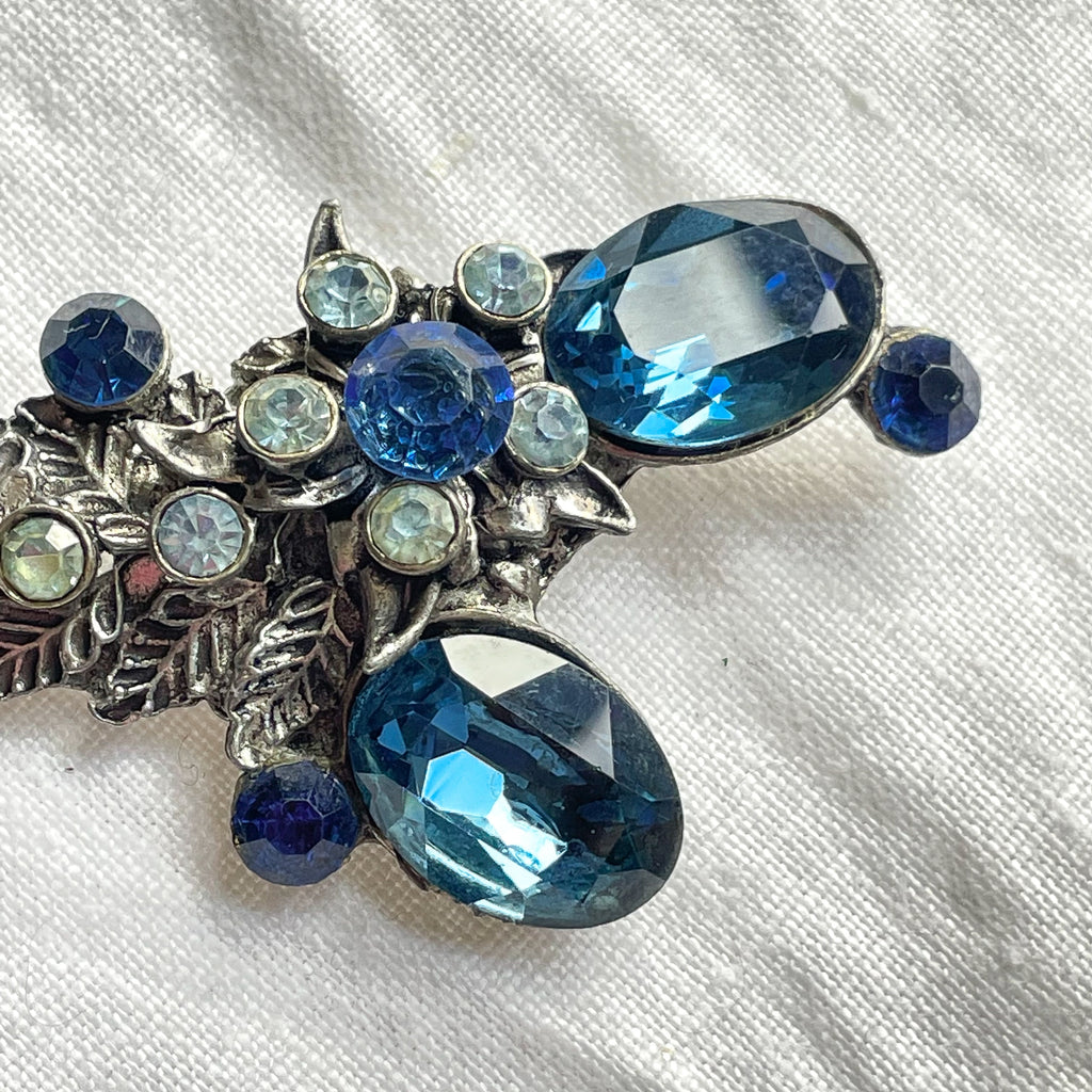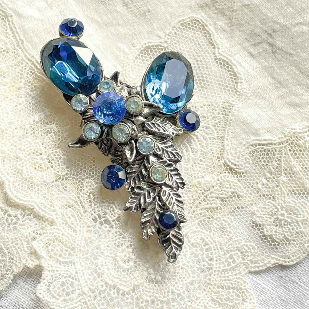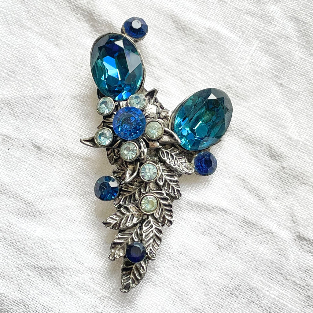Vintage 1940s brooch, assorted blue crystal/glass rhinestones.
