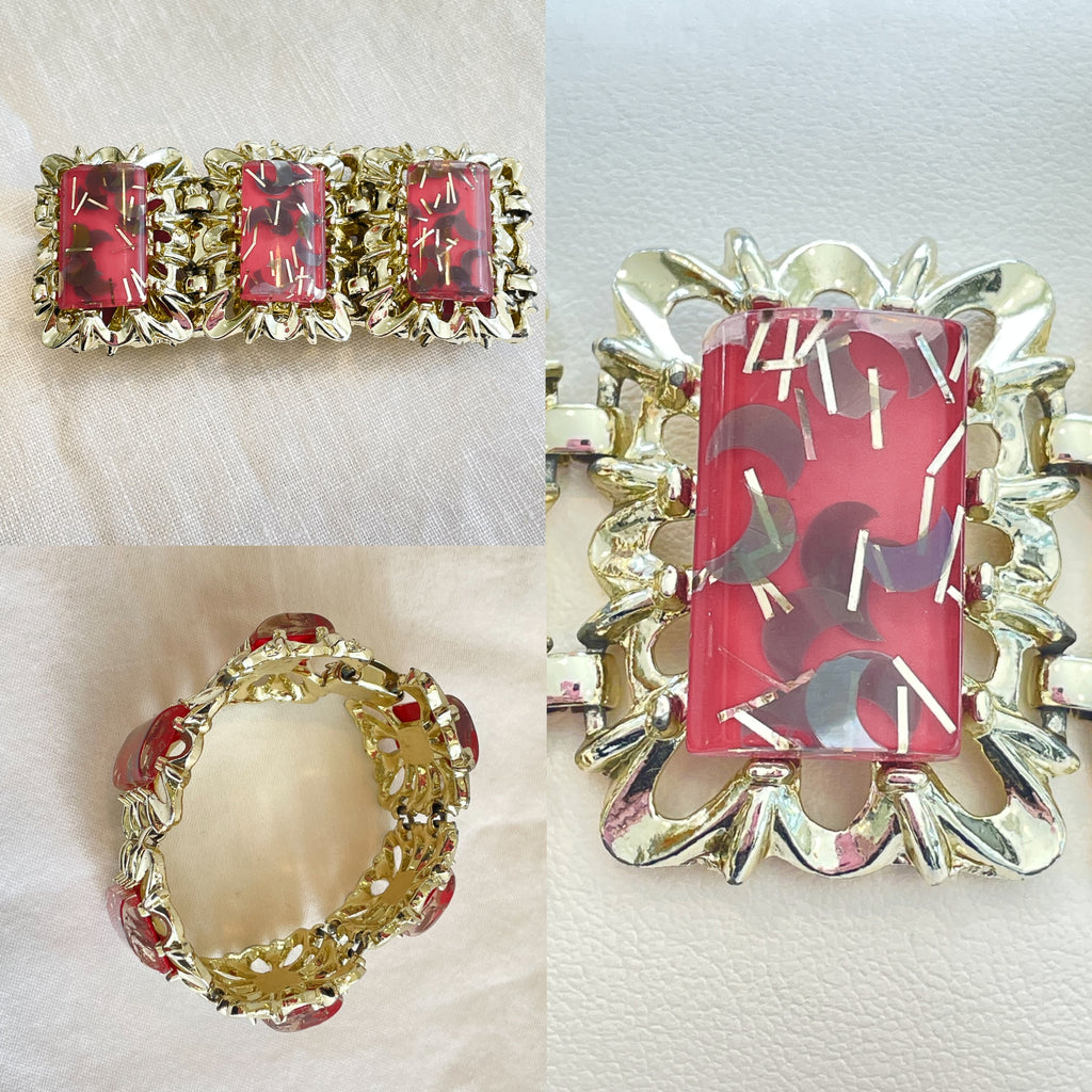 Vintage 50s sparkle confetti Lucite bracelet.