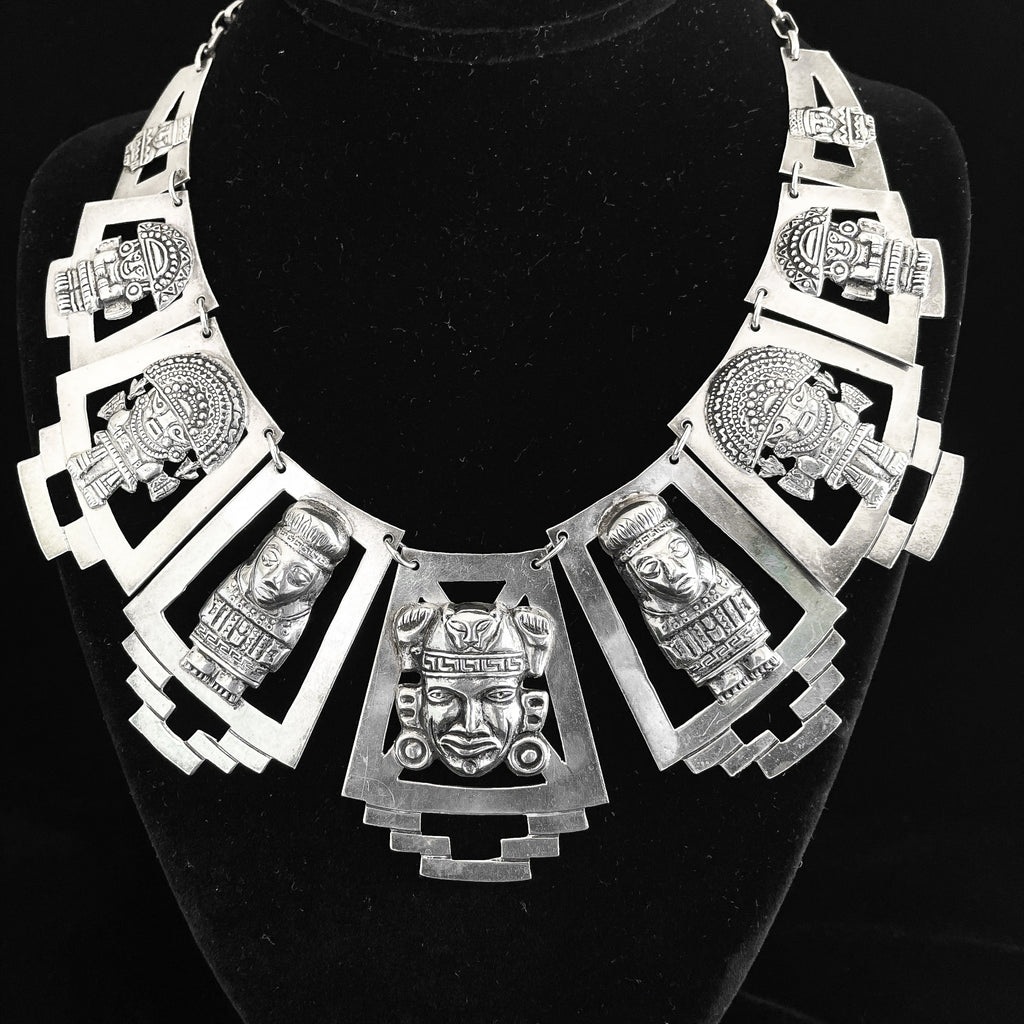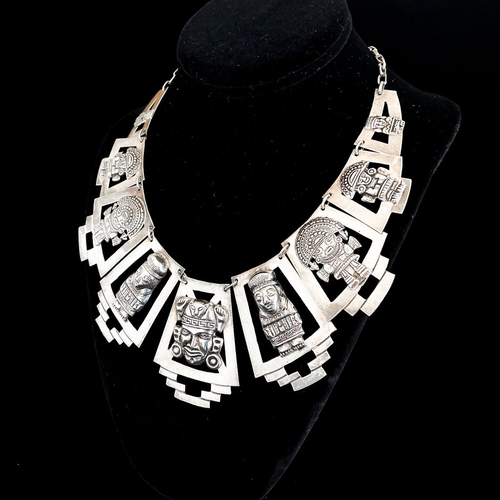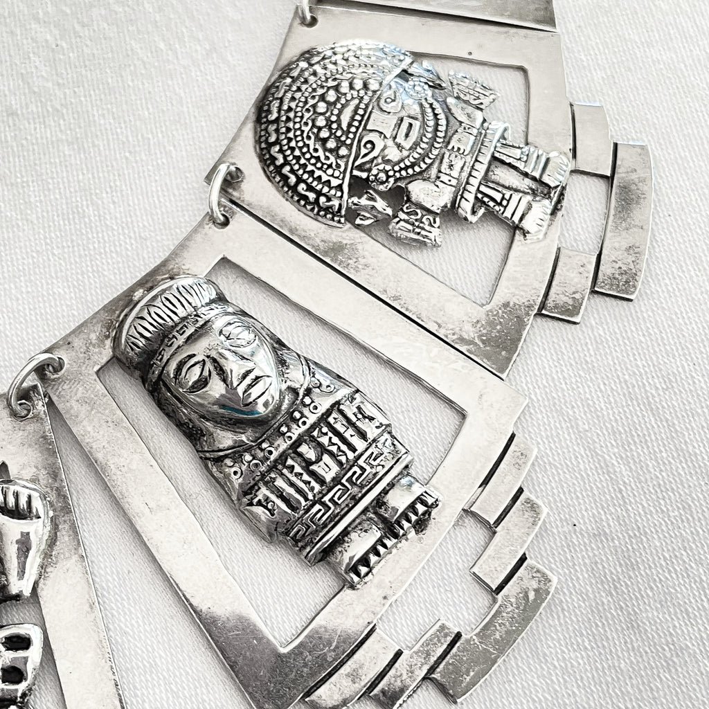 9 panels, repousse Inca 'gods' or tribal symbols.