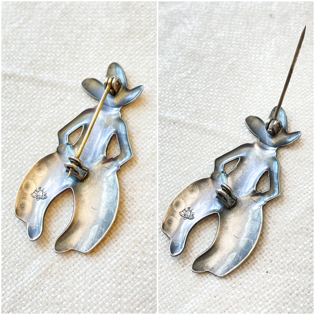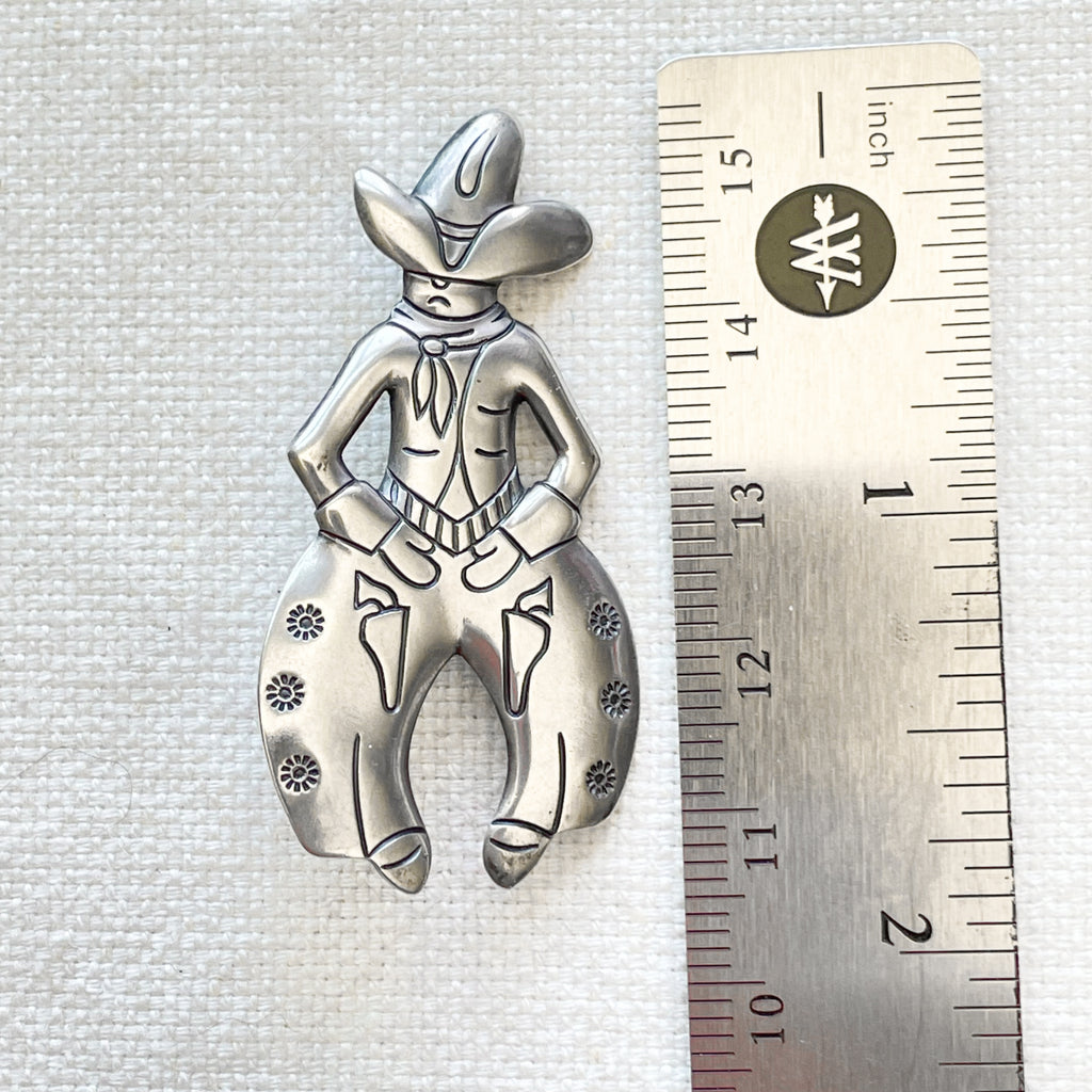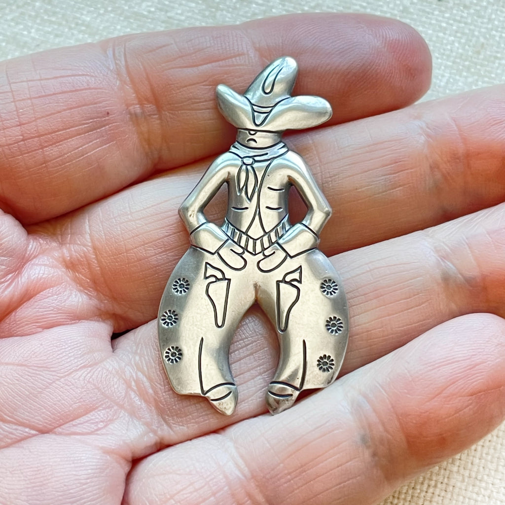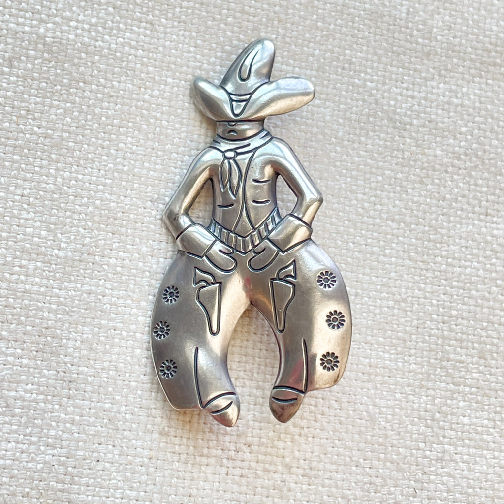 Cute cowboy with big hat & chaps. Stamped sterling silver.