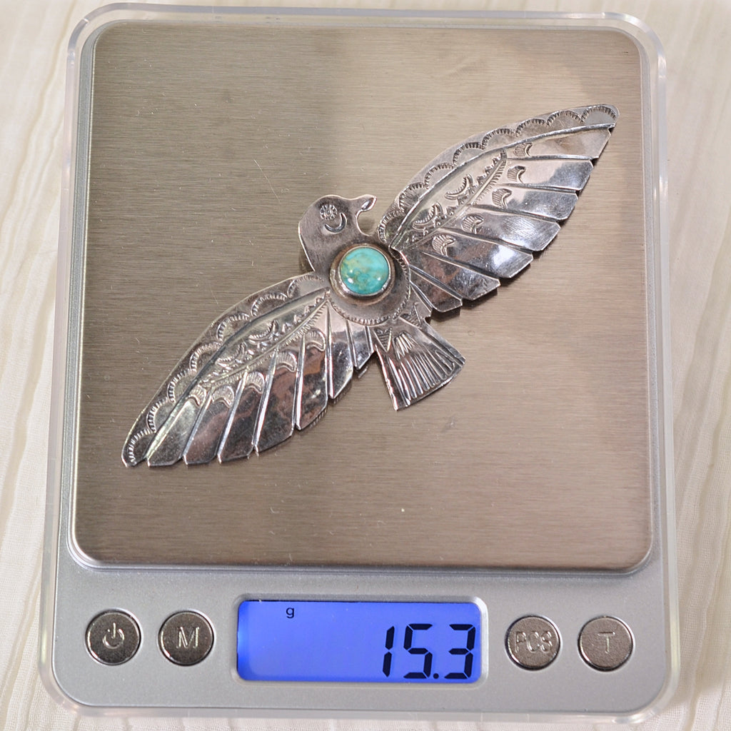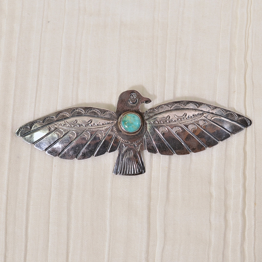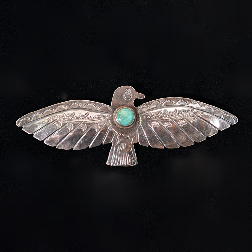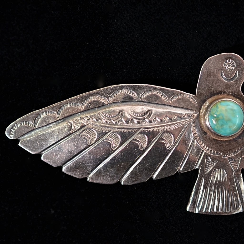 This is an amazing very large Fred Harvey Era Thunderbird brooch.