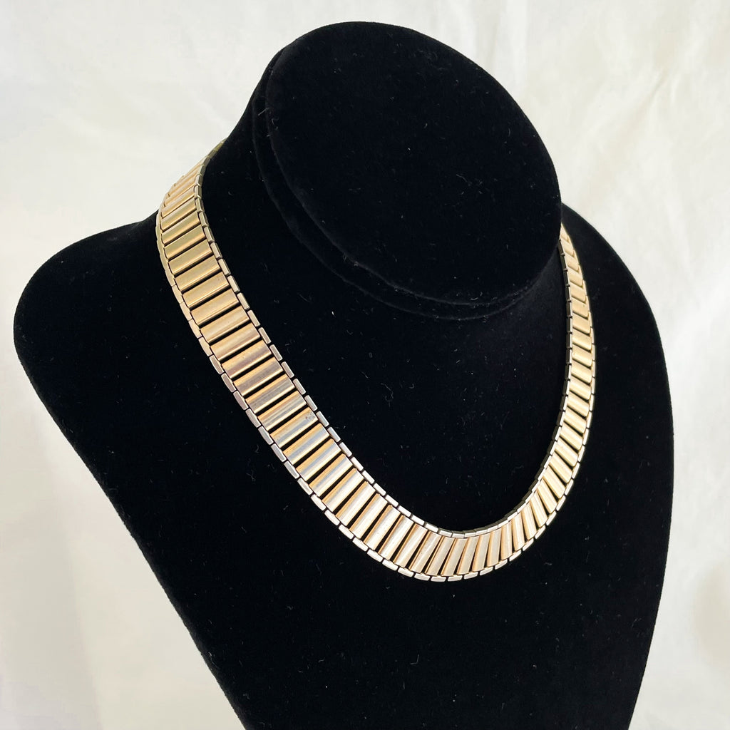 Vintage Art Deco style gold tone flat link choker/bib style necklace.