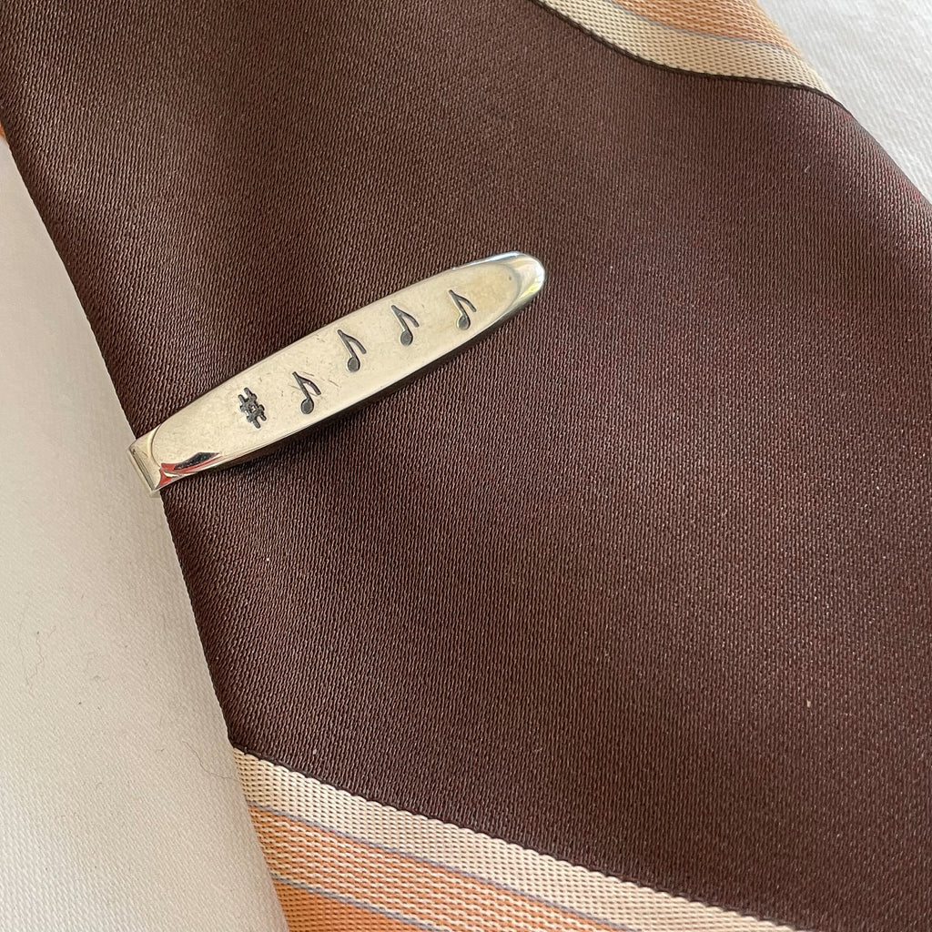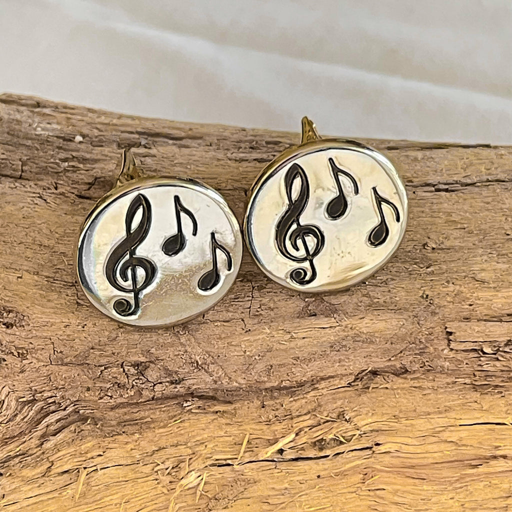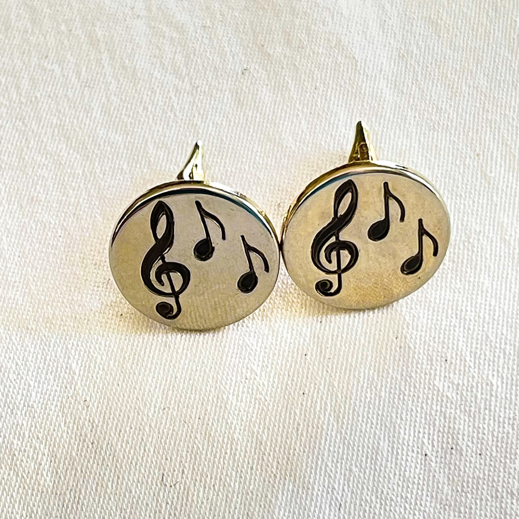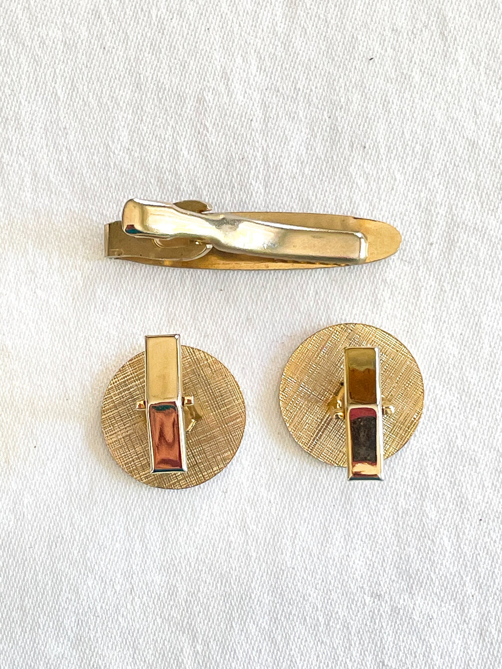 Vintage Music Note Tie Bar Cufflinks Set, Gold Tone Metal 3 Piece Set