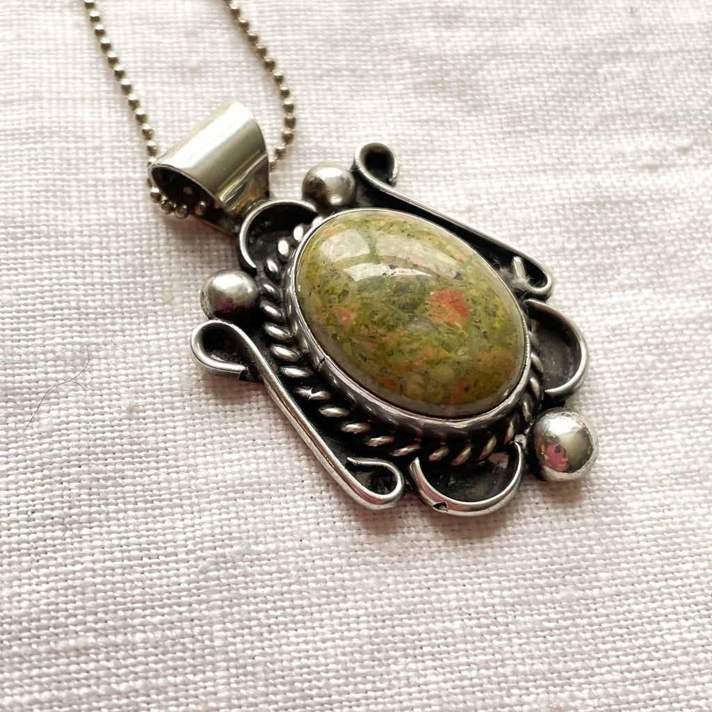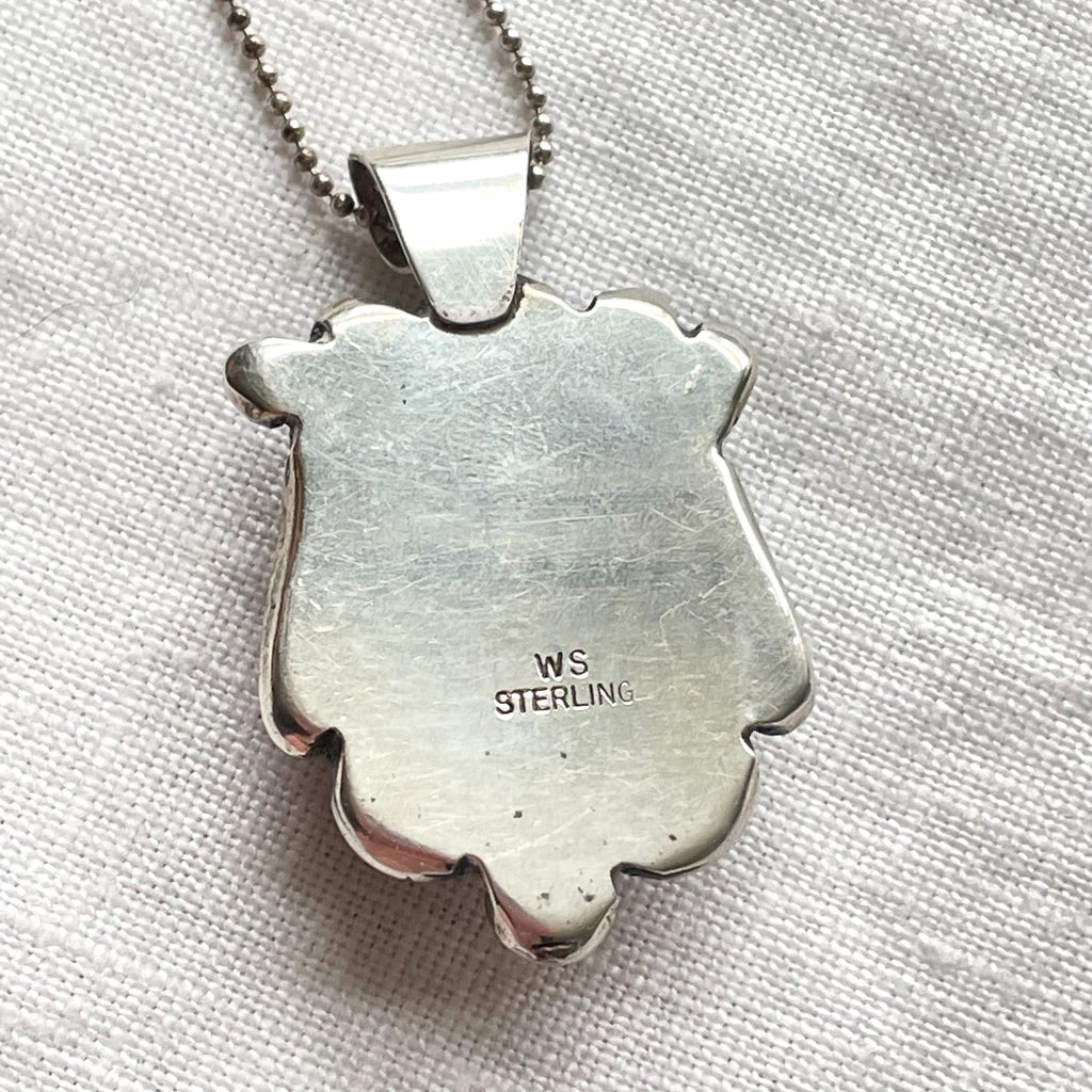 Vintage Navajo Sterling Silver Pendant w/Green Stone, Sterling Necklace, WS Willie Sais