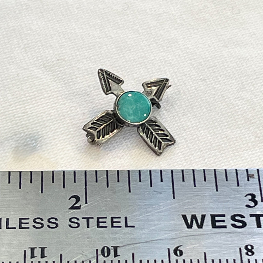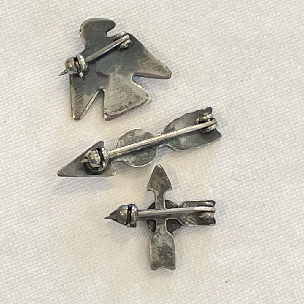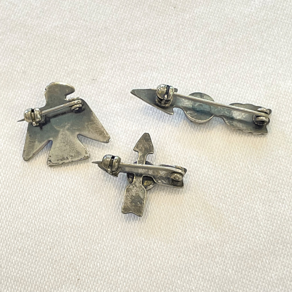 Vintage Silver Turquoise 3 Small Pin Collection, Thunderbird Arrow Crosses Lot