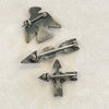 Measurements: Cross: 1/2" H, Arrow: 1" L, Bird: 5/8" H