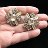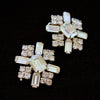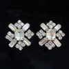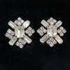 Great statement earring with large center baguette stones, round and baguette stones surrounding.