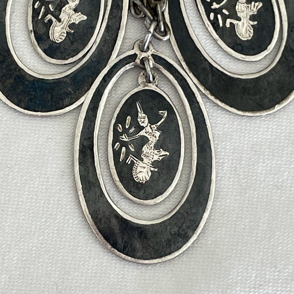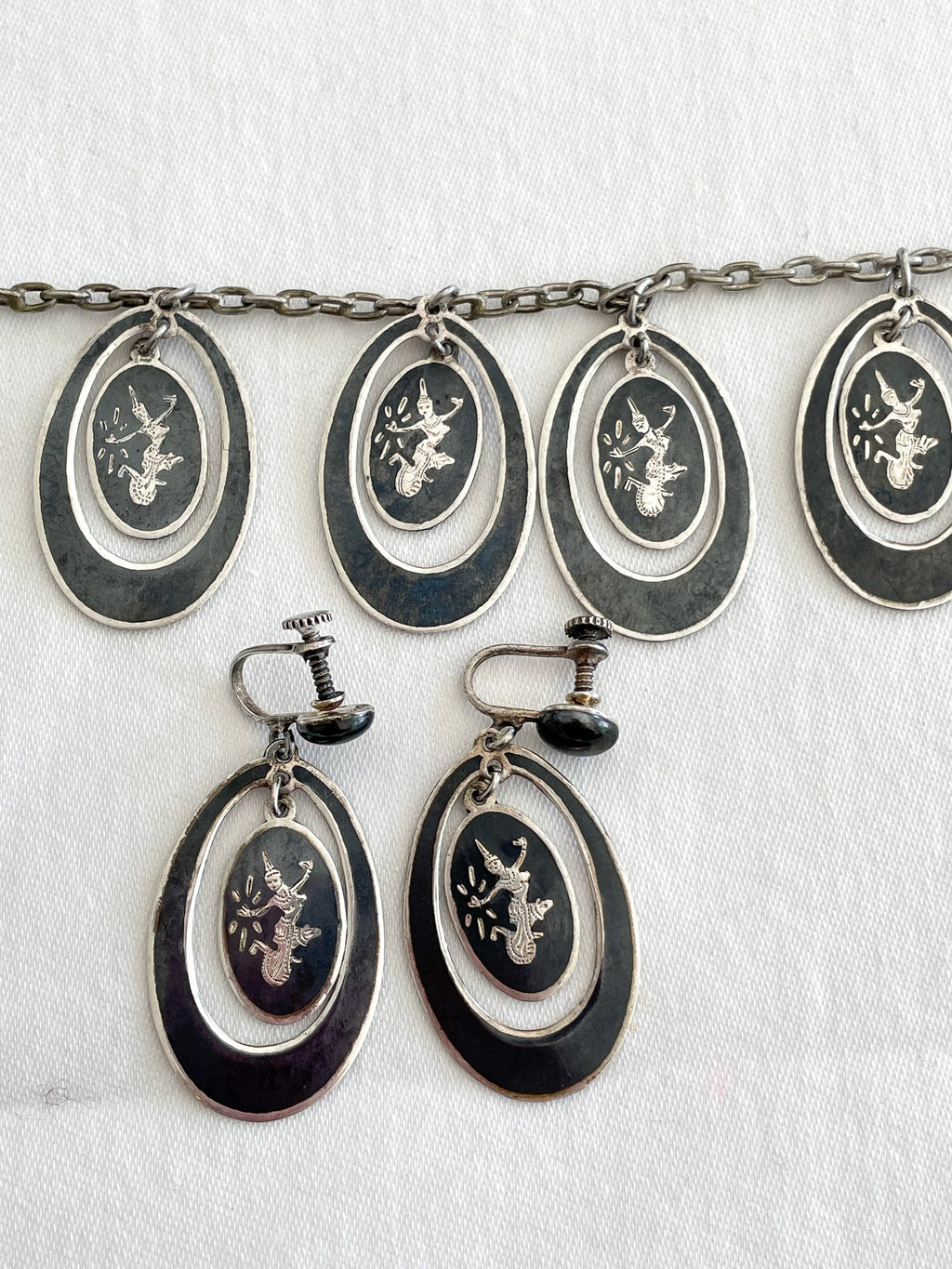 Vintage Sterling Silver Siam Dancer Necklace & Earrings Set
