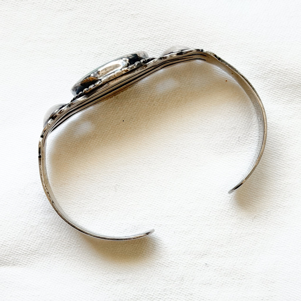 Vintage sterling silver Fred Harvey era stamped cuff bracelet.