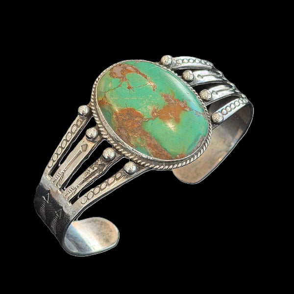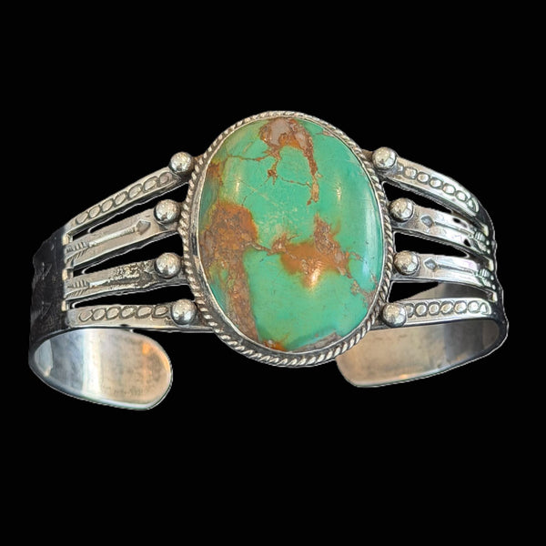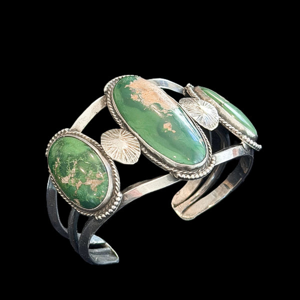 Vintage Huge Green Turquoise Sterling Native American Cuff Bracelet, Amazing Statement Piece110 G