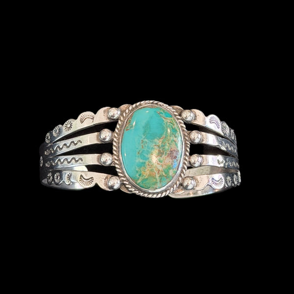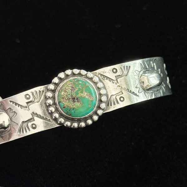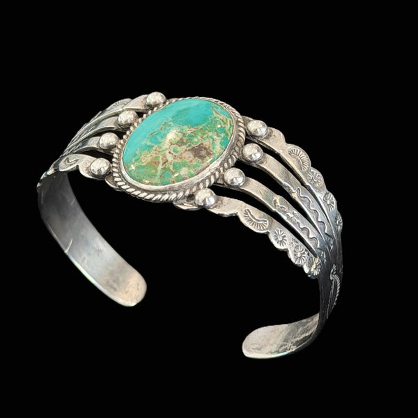 Vintage Native American Sterling Silver Turquoise Repousse/Stamped Bracelet