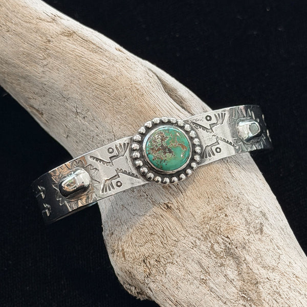 1930s Fred Harvey Silver Turquoise Stamped Cuff Bracelet, Size 6 1/2 Grams 32.5