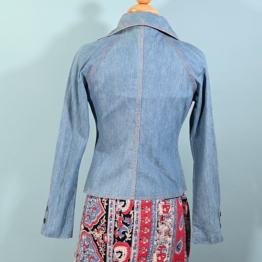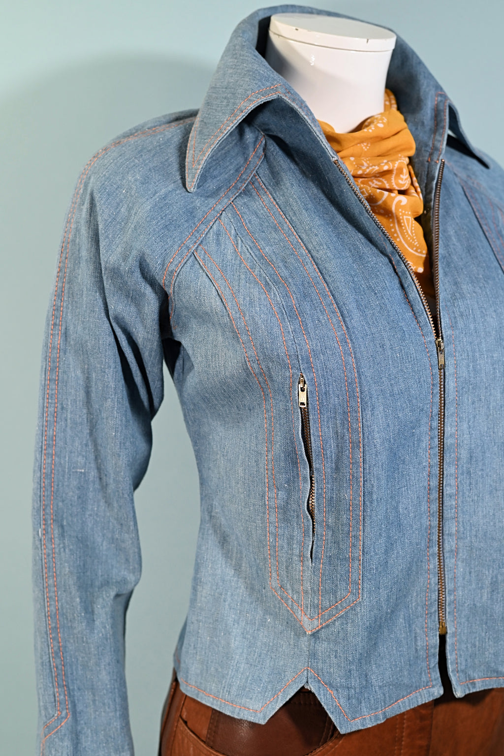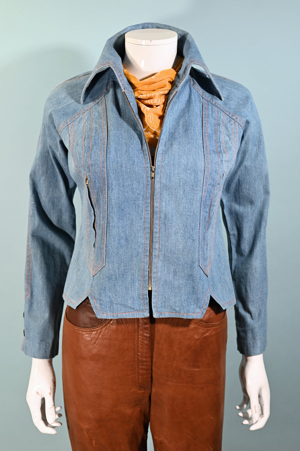 Vintage 60s/70s denim jacket with pointed collar and zipper front.