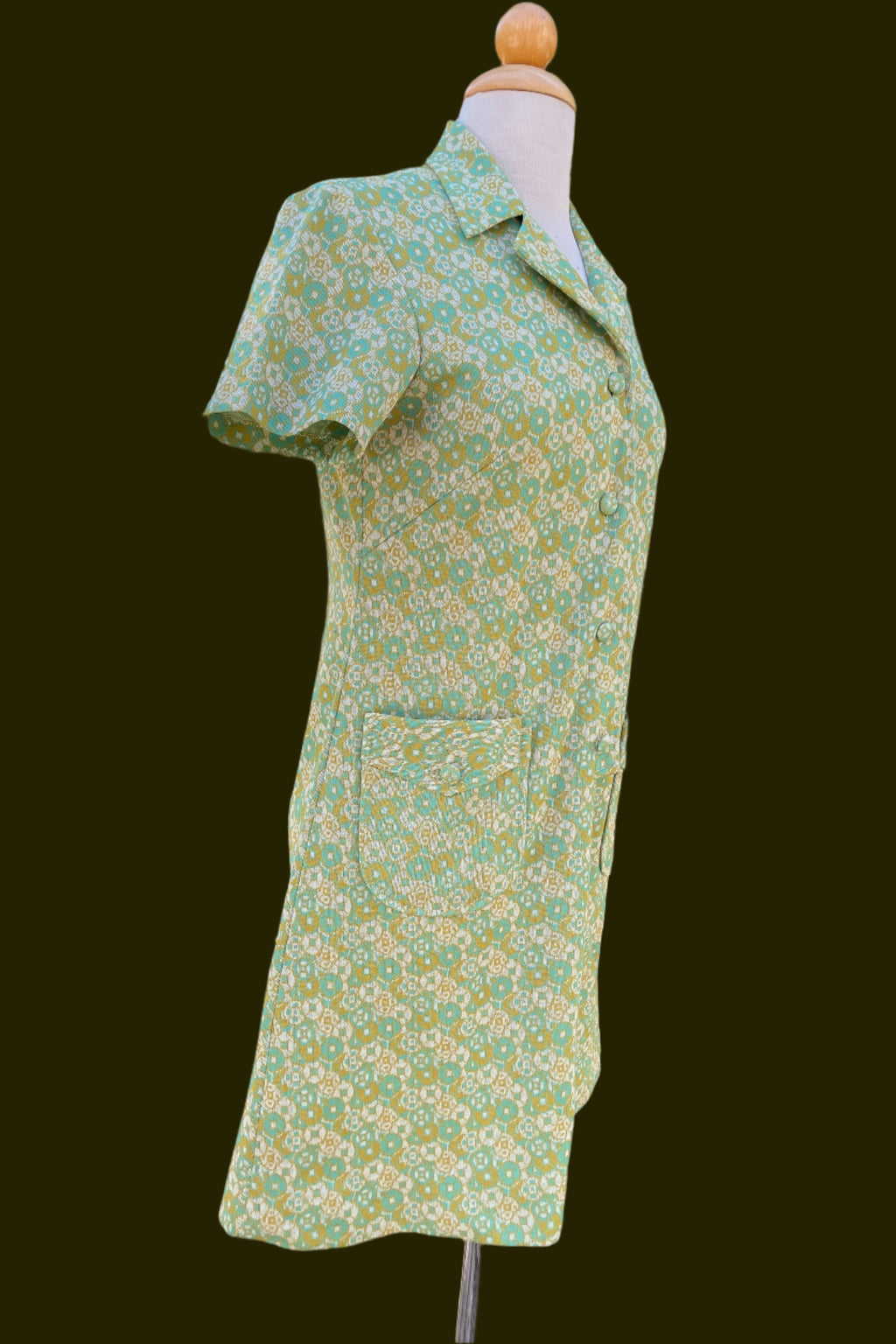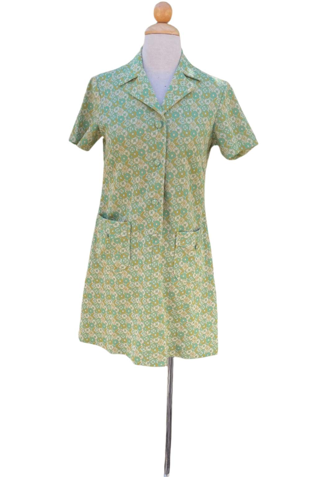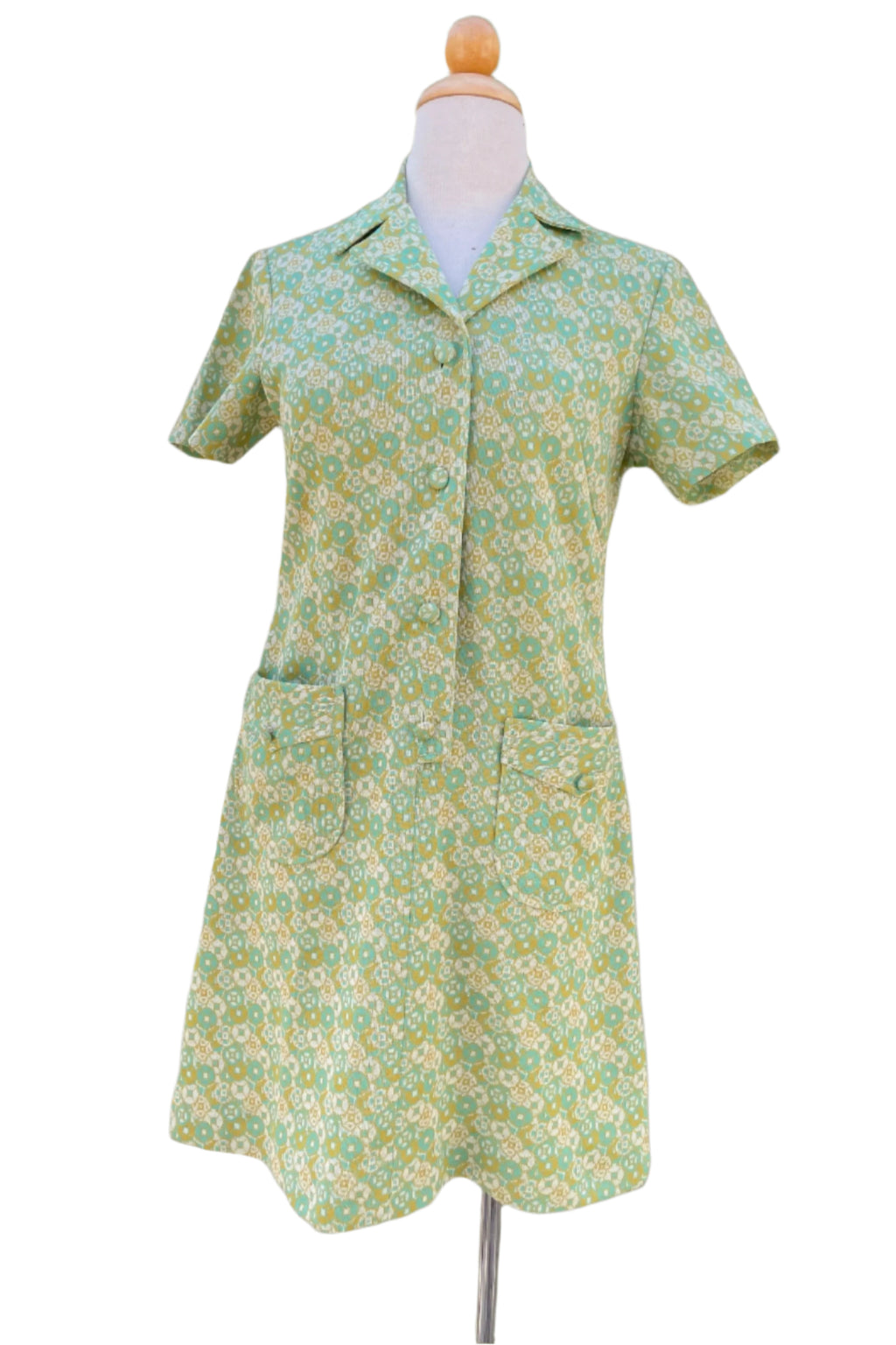 60s Mod Knit Dress, 70s A Line Print Mini Dress S