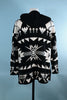 The sweater slips over the head, zips at the neckline, and has a hood.