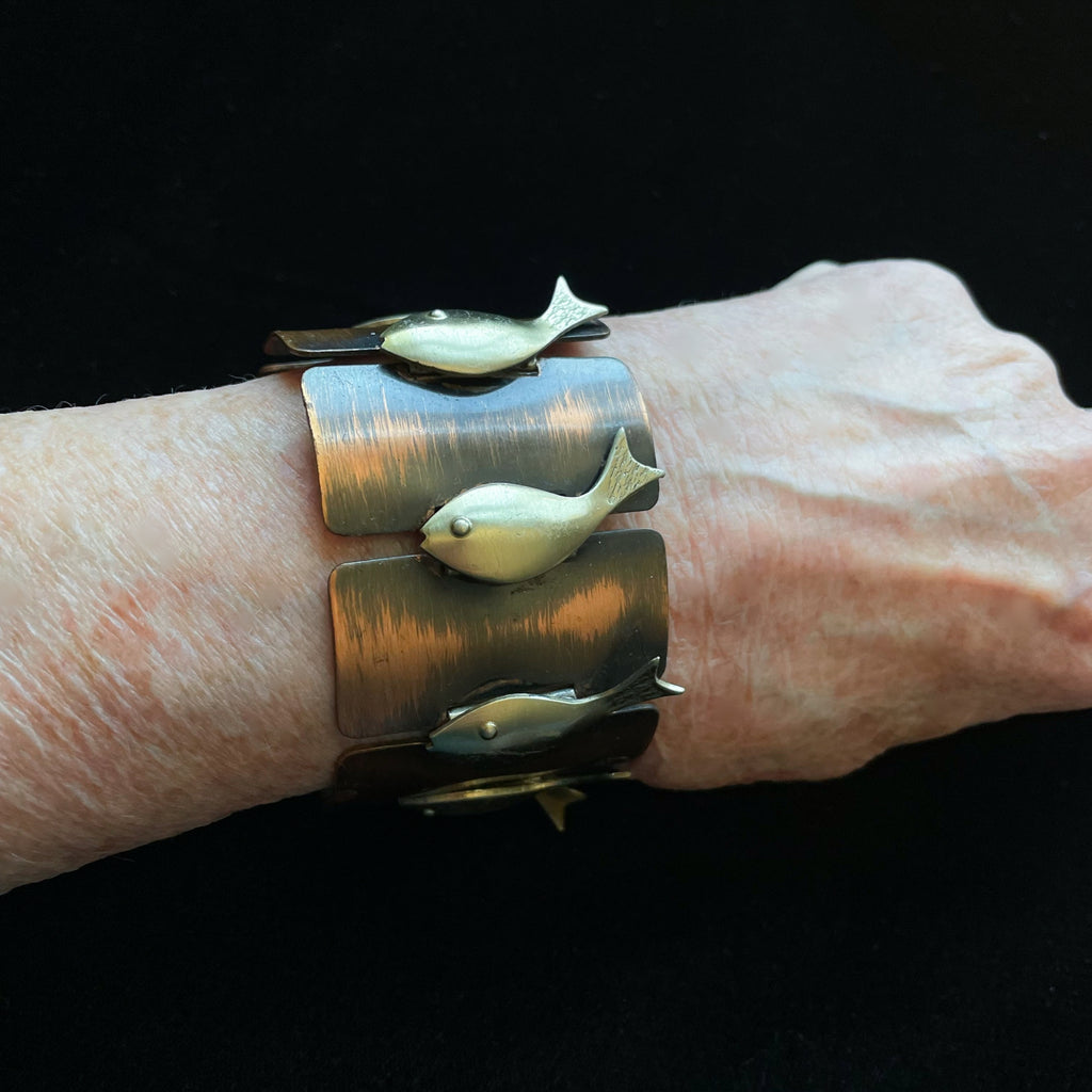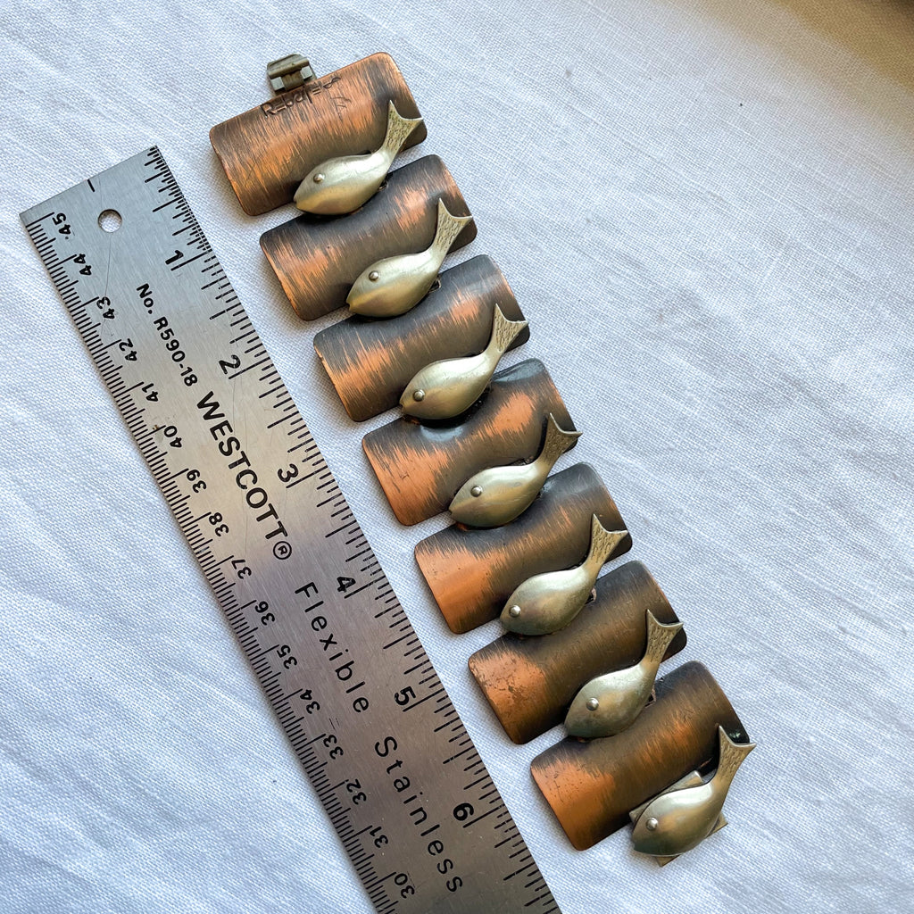 SOLD Vintage Rebajes Fish Copper Silver Plate Modernist MCM Bracelet