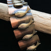 Panel bracelet, 7 copper panels with 7 fish attached.