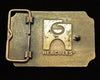 Great lettering on an octagonal raised frame buckle with a pebbled texture background.
