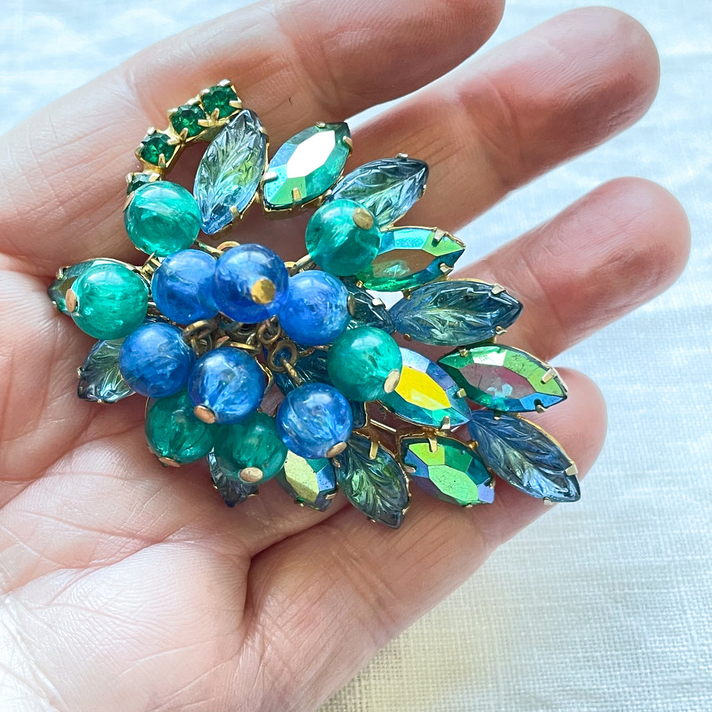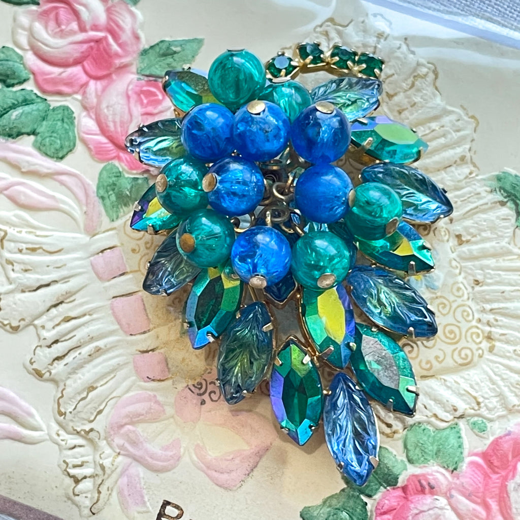 Lovely teal/aquamarine Navette AB rhinestones, blue/teal bobbles, variegated carved rhinestones 7 more.