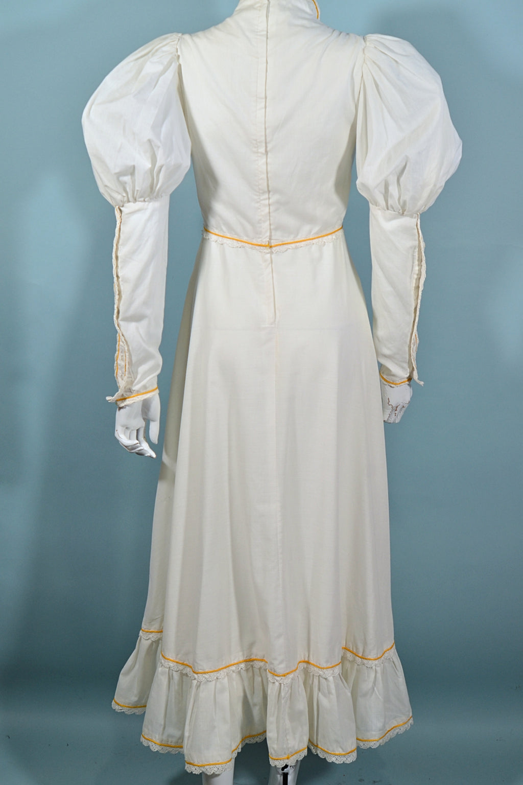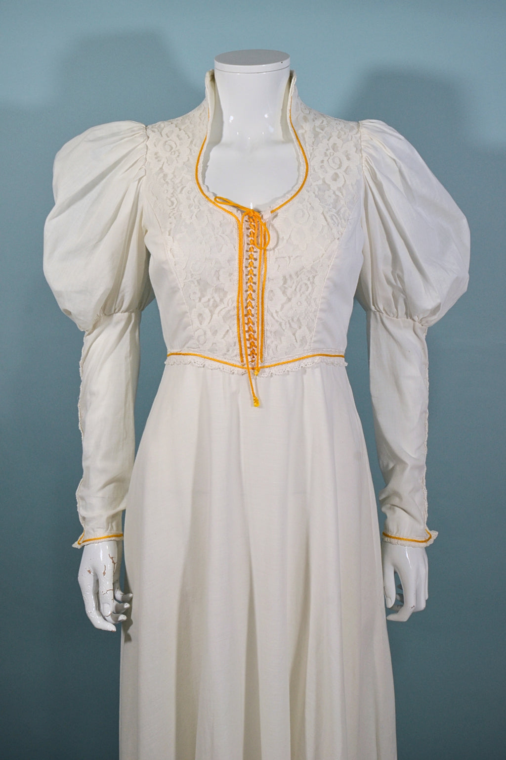 Vintage Gunne Sax dress in the Victorian prairie style with corset lace-up front & huge leg o mutton sleeves.