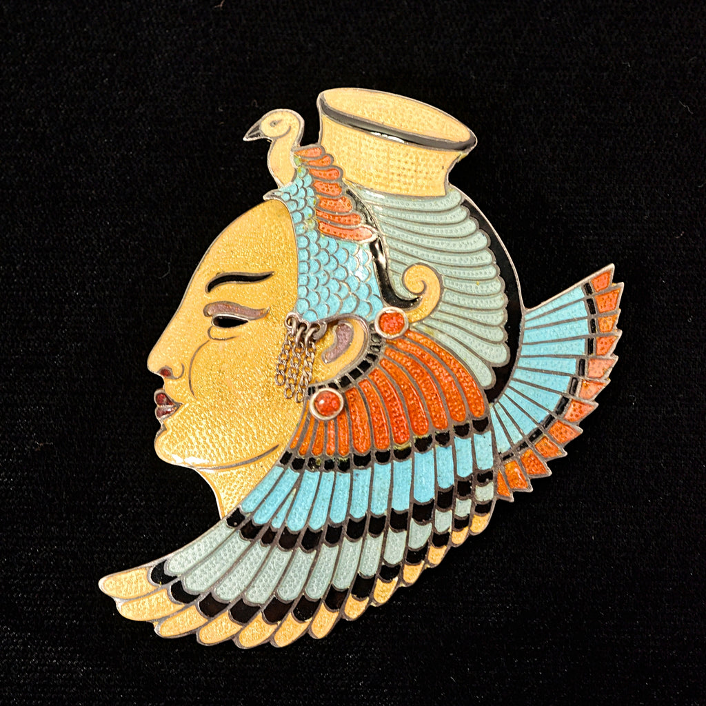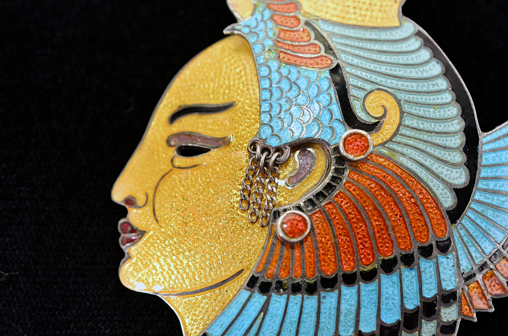 This is a Champleve enamel piece, highly sought after design #5242 Egyptian face.