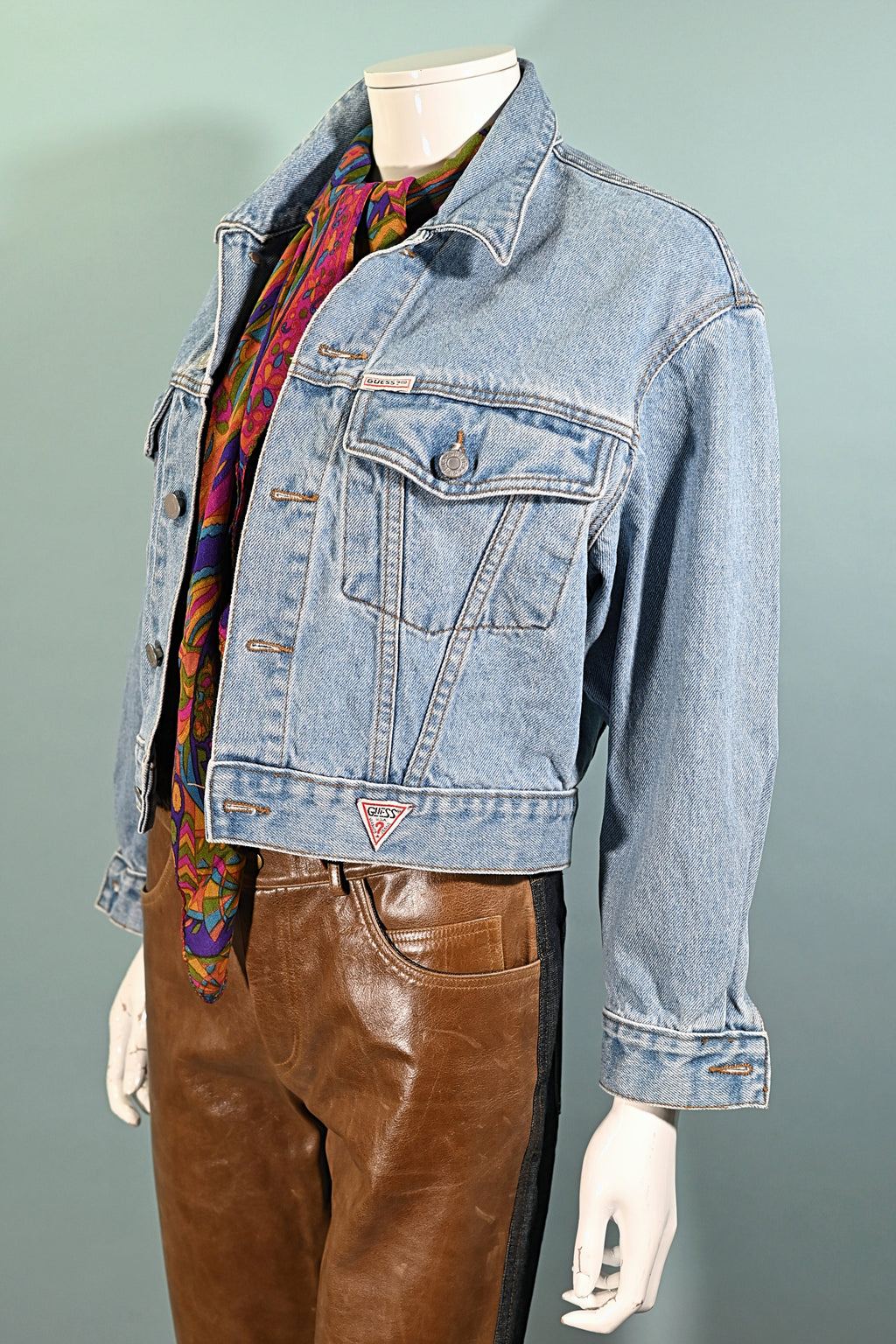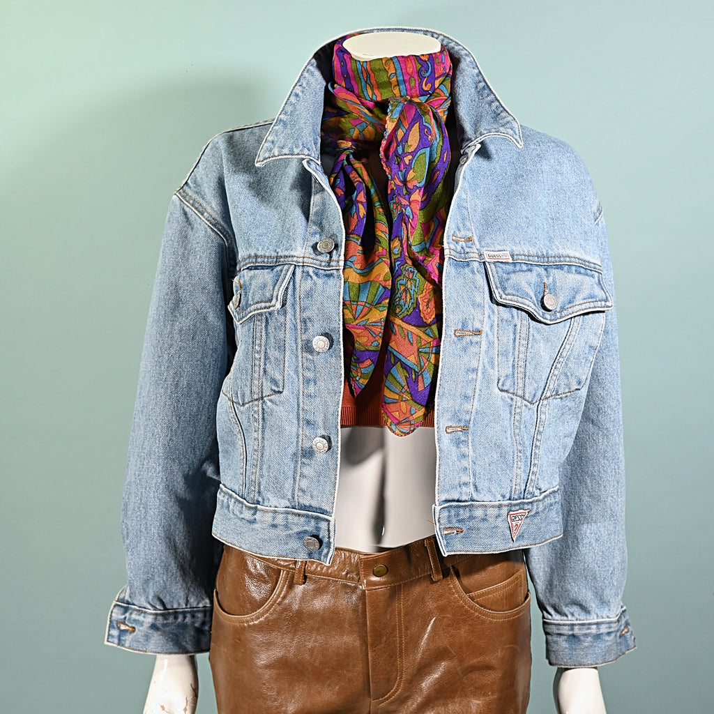 Vintage 80s cropped light wash denim jacket by Guess!