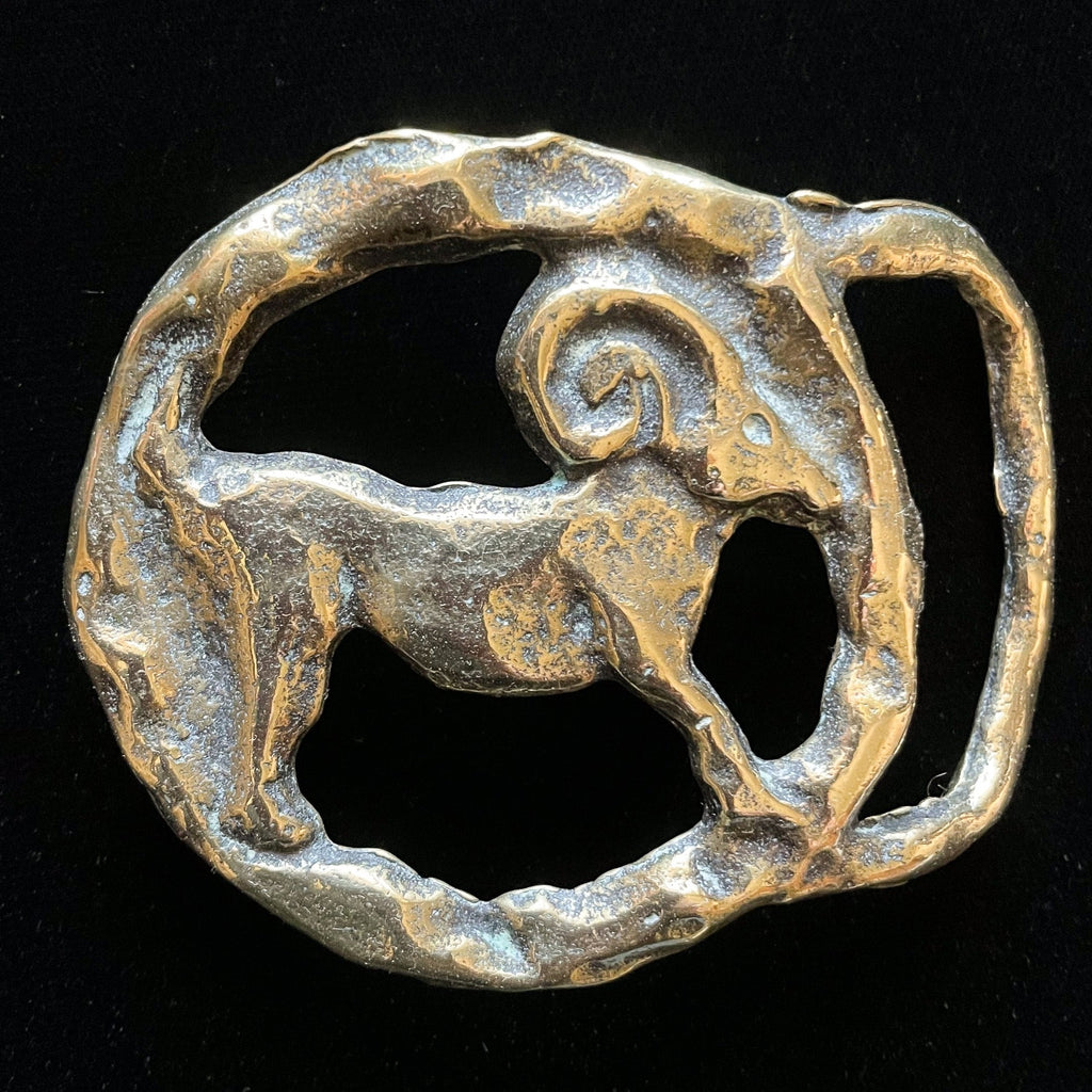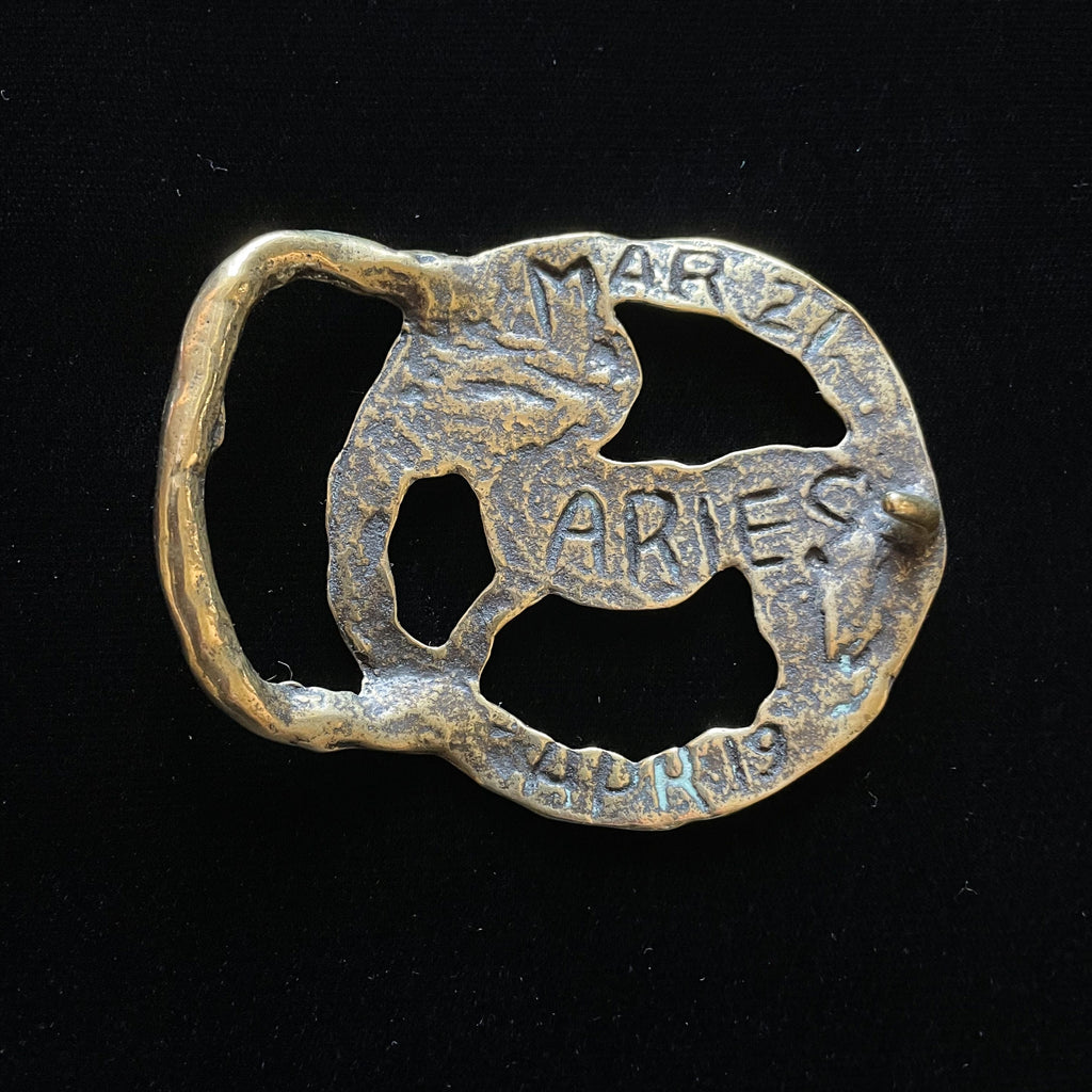 Vintage 70s solid brass Aries Zodiac sign belt buckle.