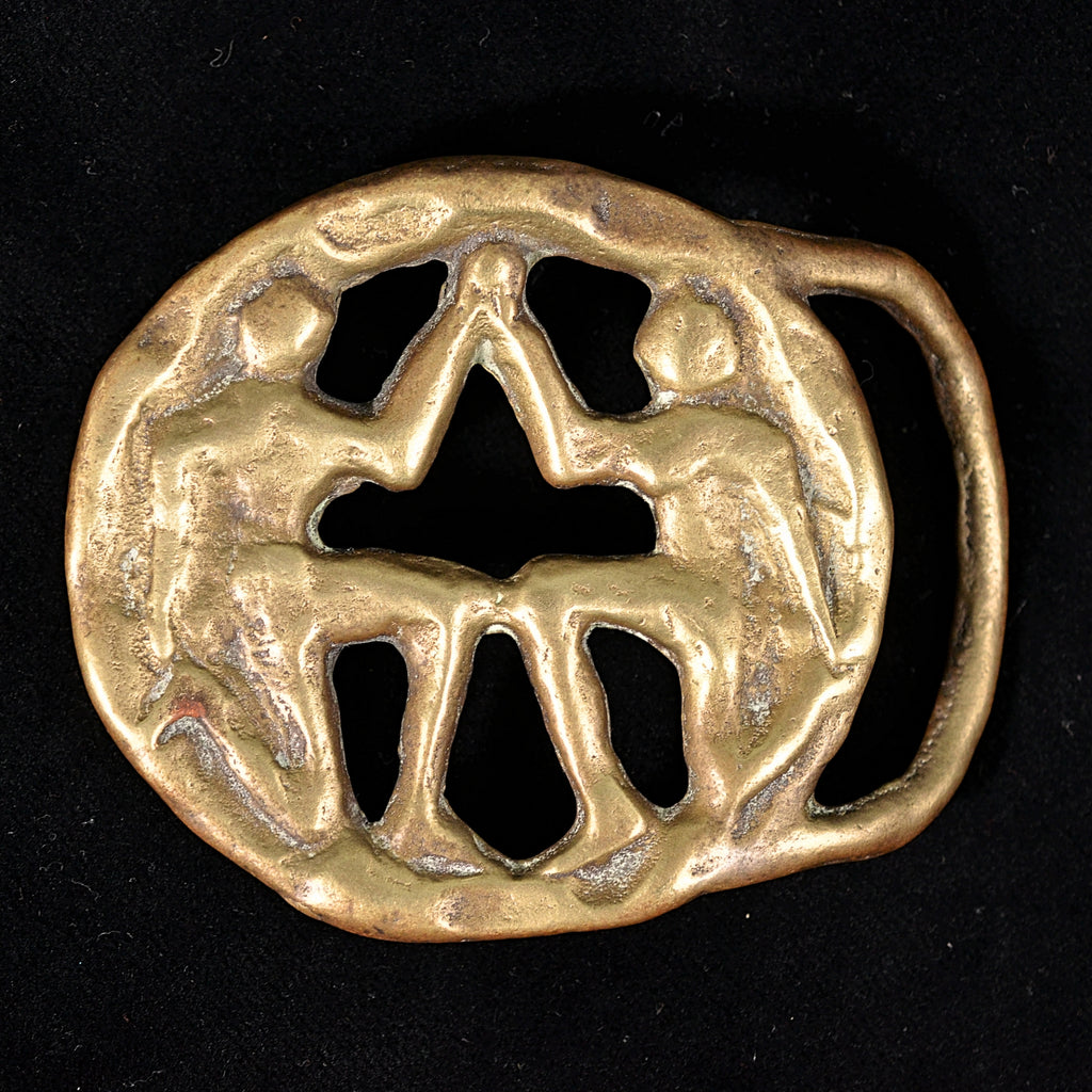 SOLD Vintage 70s Gemini Zodiac Solid Brass Belt Buckle, Brutalist Modernist Astrology Buckle