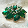 Mid Century domed emerald green pear shaped and round rhinestone brooch.