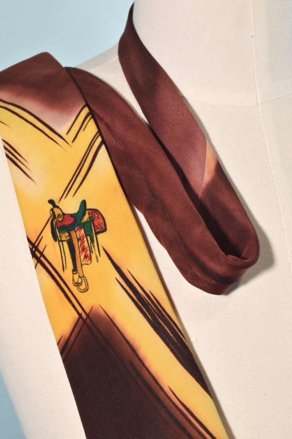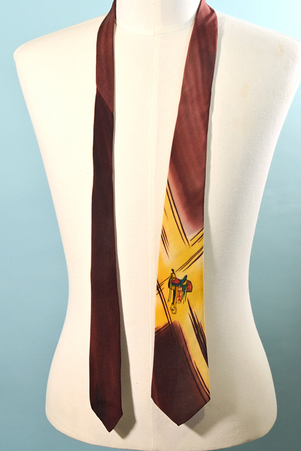 SOLD Vintage 40s/50s Saddle, Western Style Hand Painted Silk Tie
