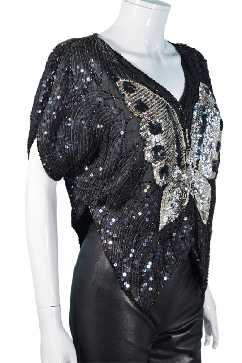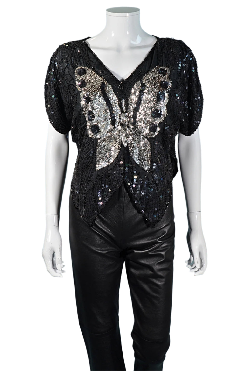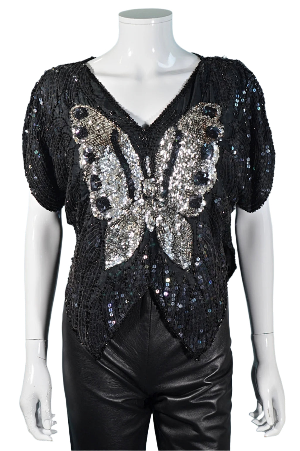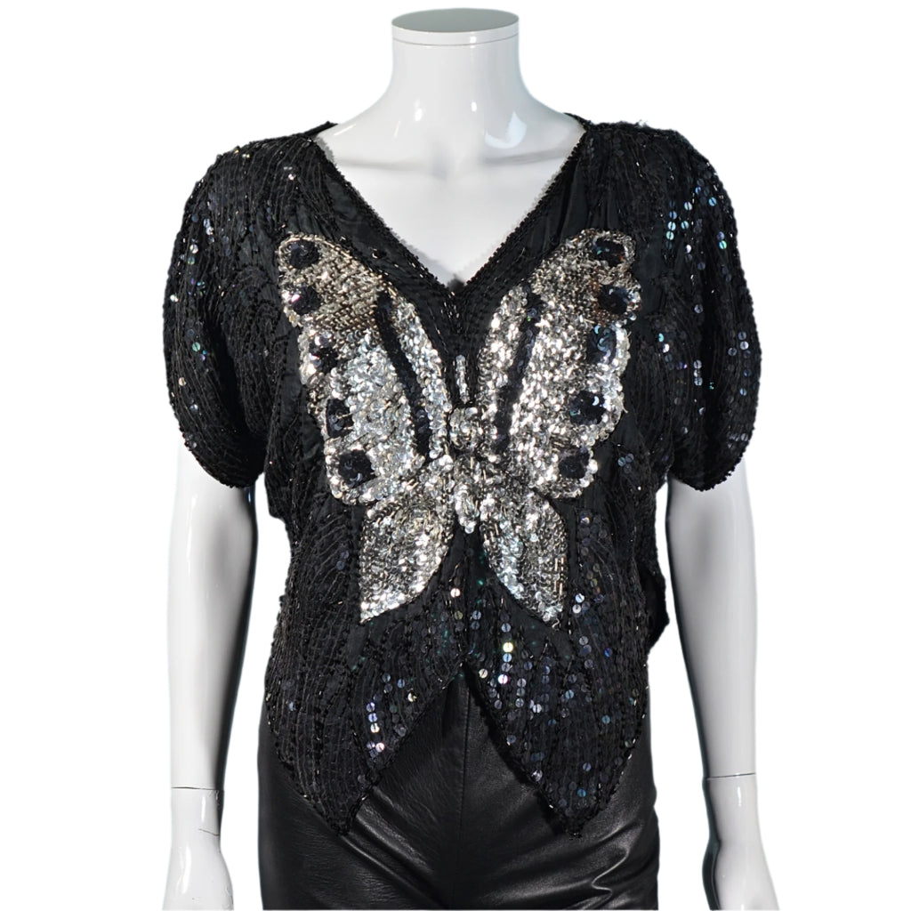 Vintage 1970s sparkling butterfly disco top. So pretty and easy to wear.