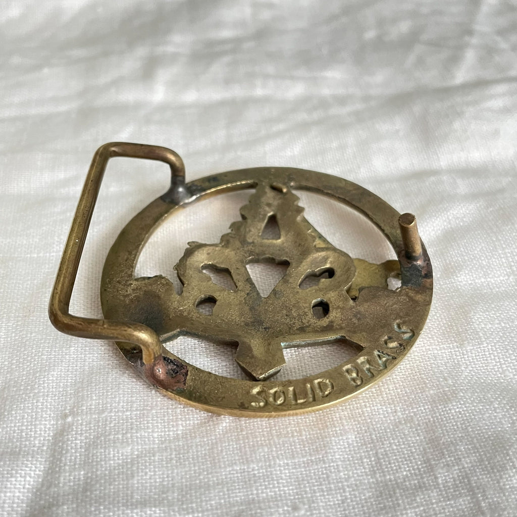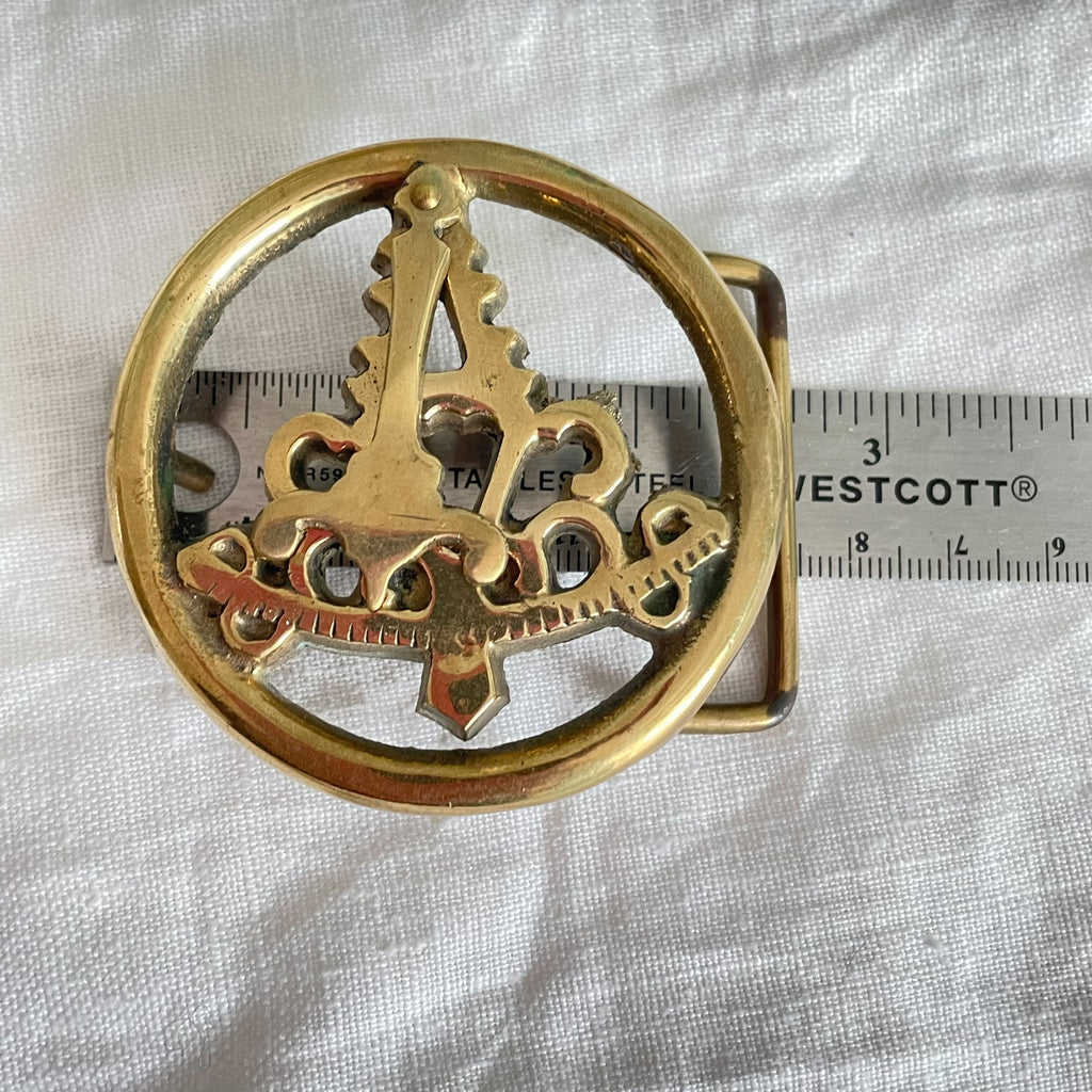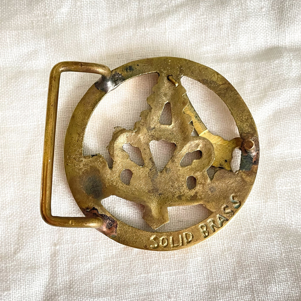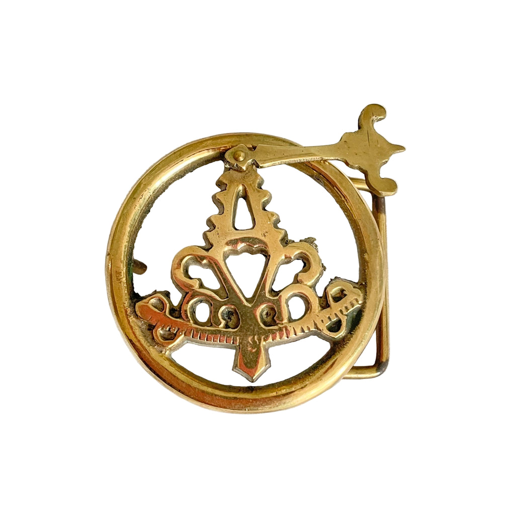 Vintage solid brass belt buckle with single prong.
