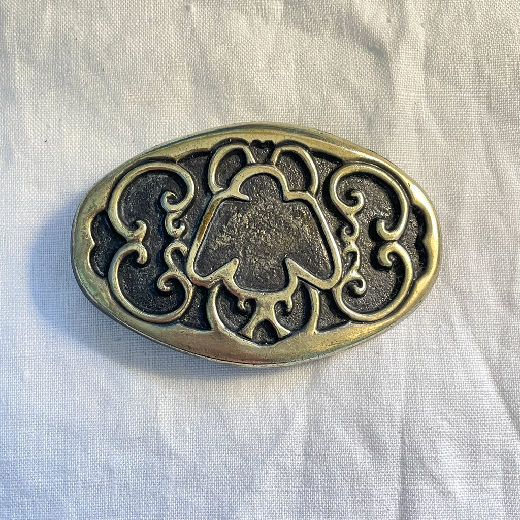 Vintage Brass Belt Buckle Thunderbird, Dimensional Hippie Buckle