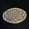 Oval buckle, dimensional design with a thunderbird/eagle in the center.