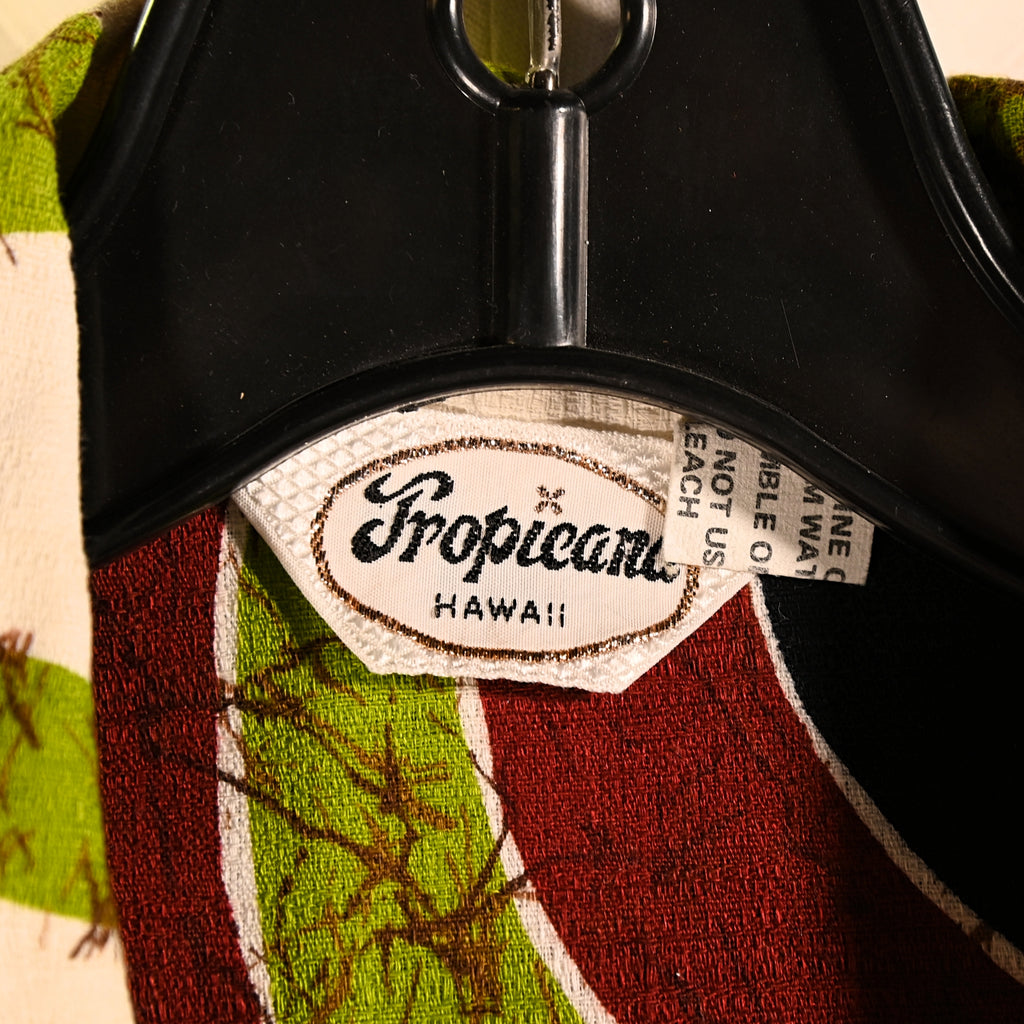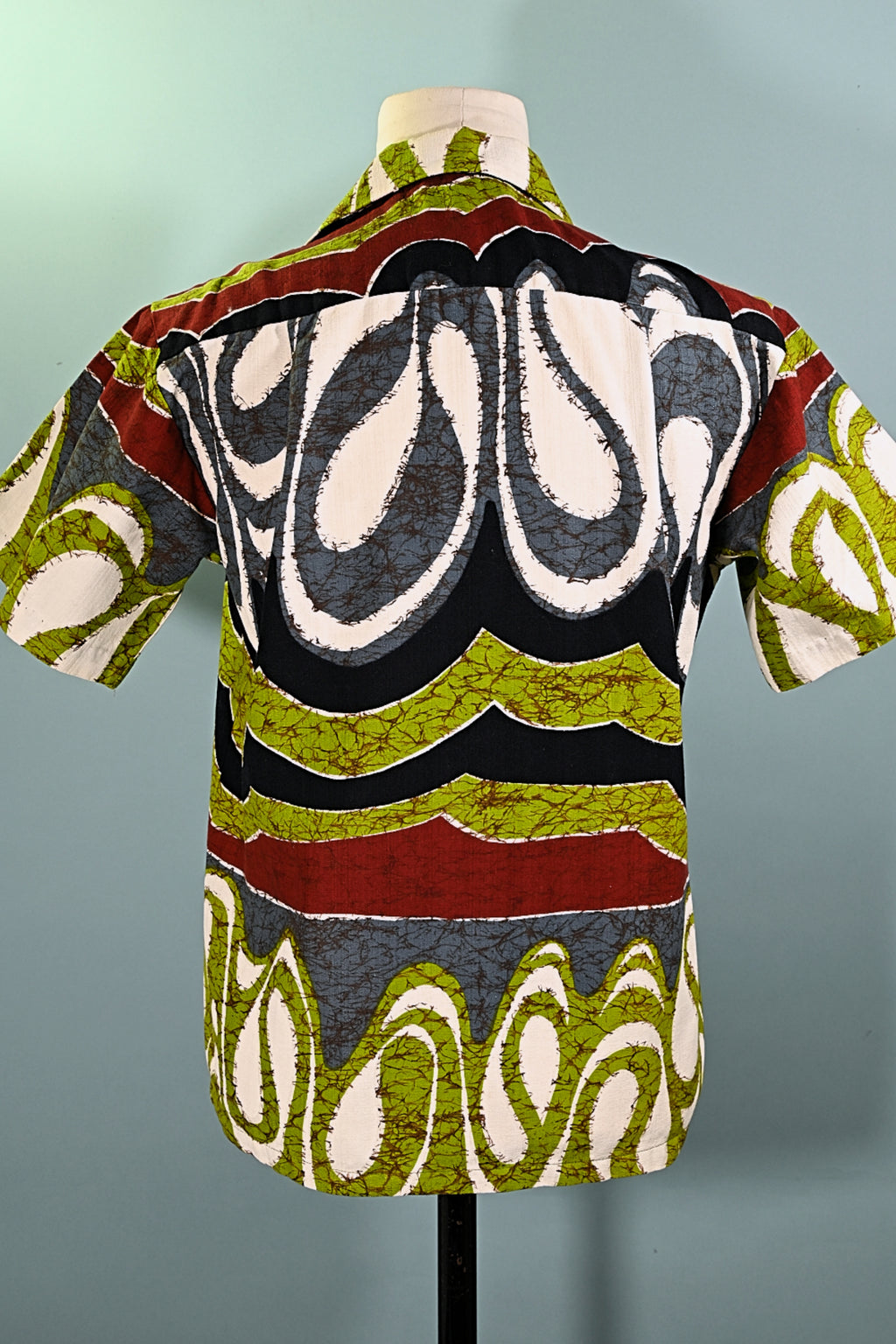 Vintage 70s bold print Hawaiian shirt in cotton barkcloth.
