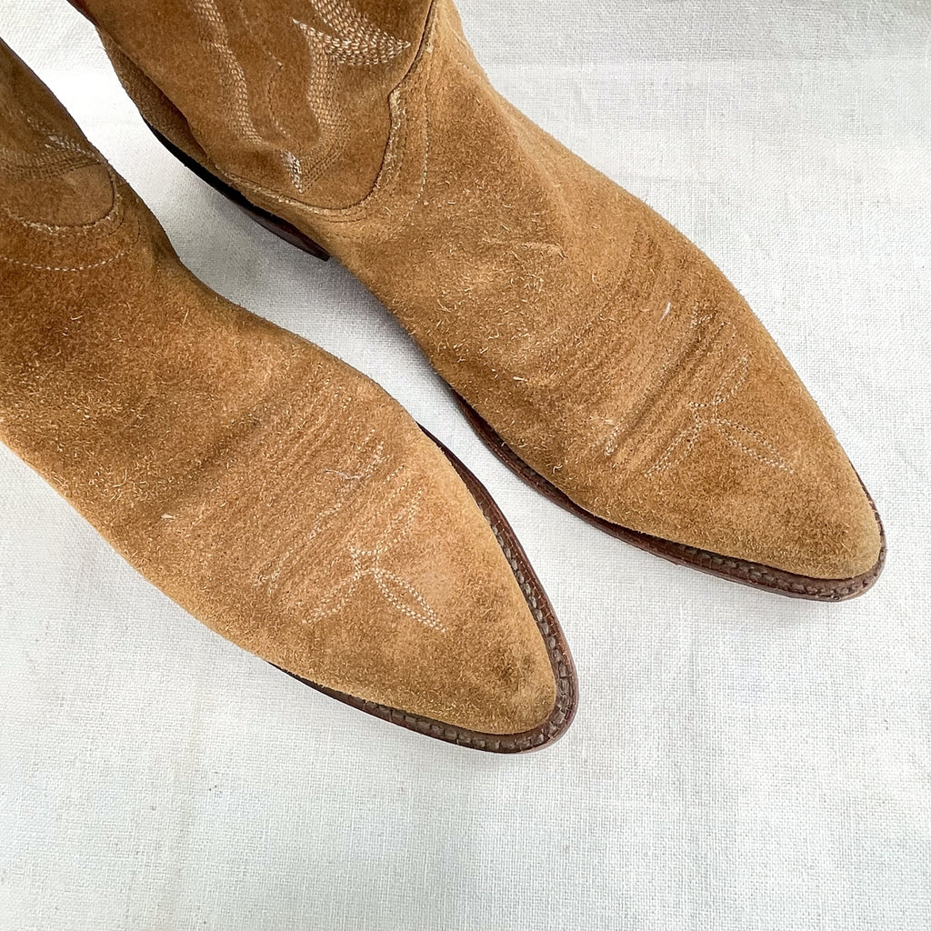 Vintage tan buckskin western boots. 1883 Luccese brand.