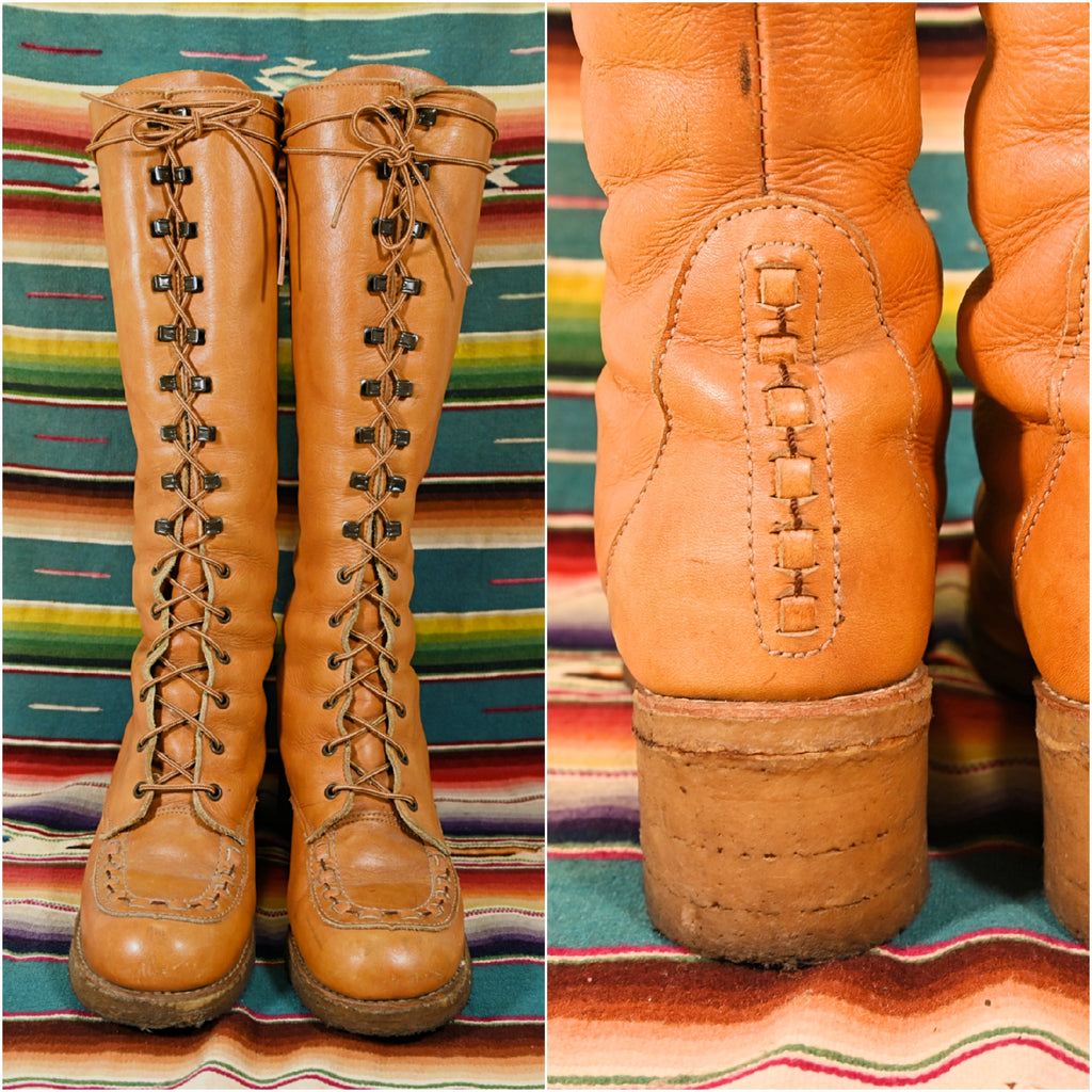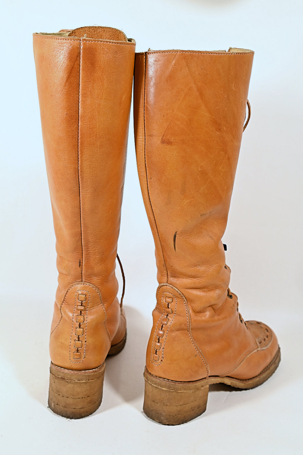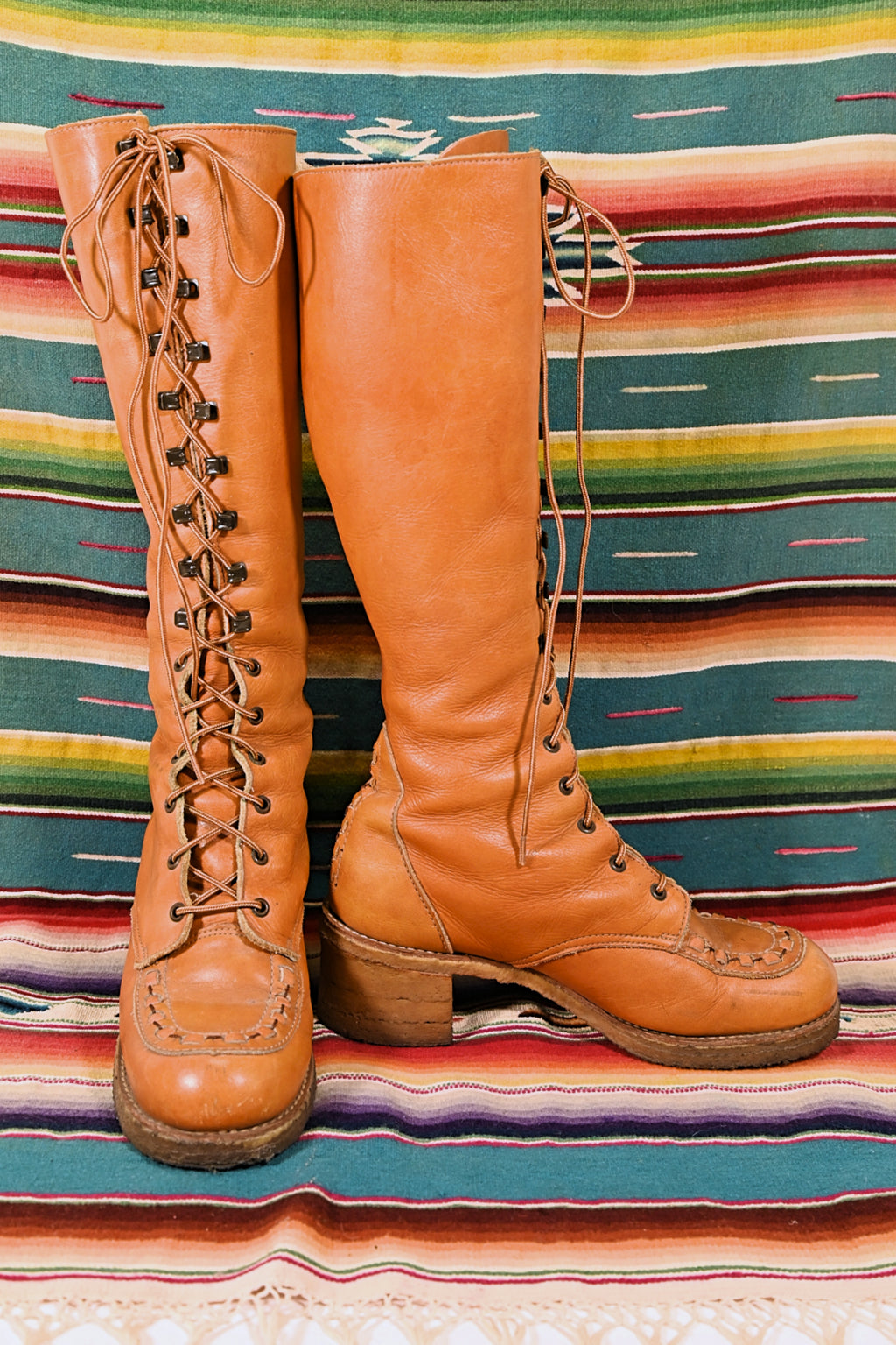 1960s/70s leather lace up boots with gum soles and chunky heels.