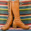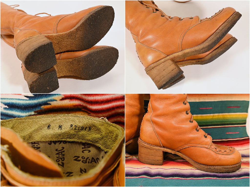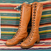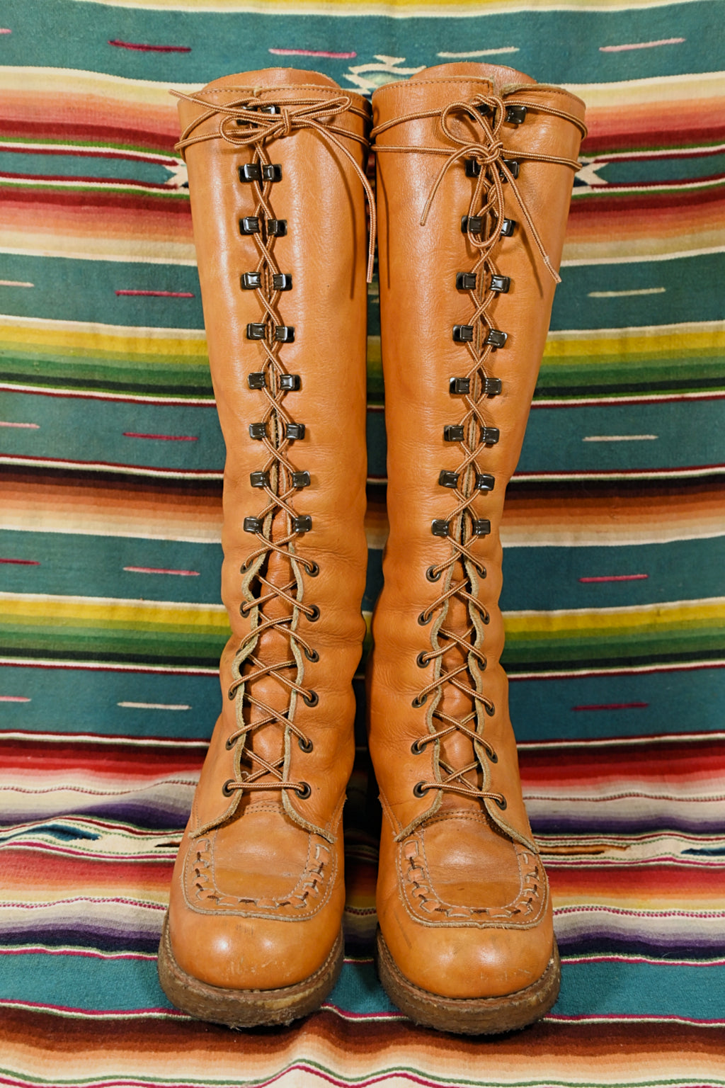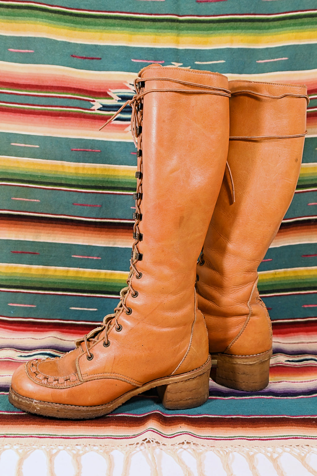 1960s/70s leather lace up boots with gum soles and chunky heels.