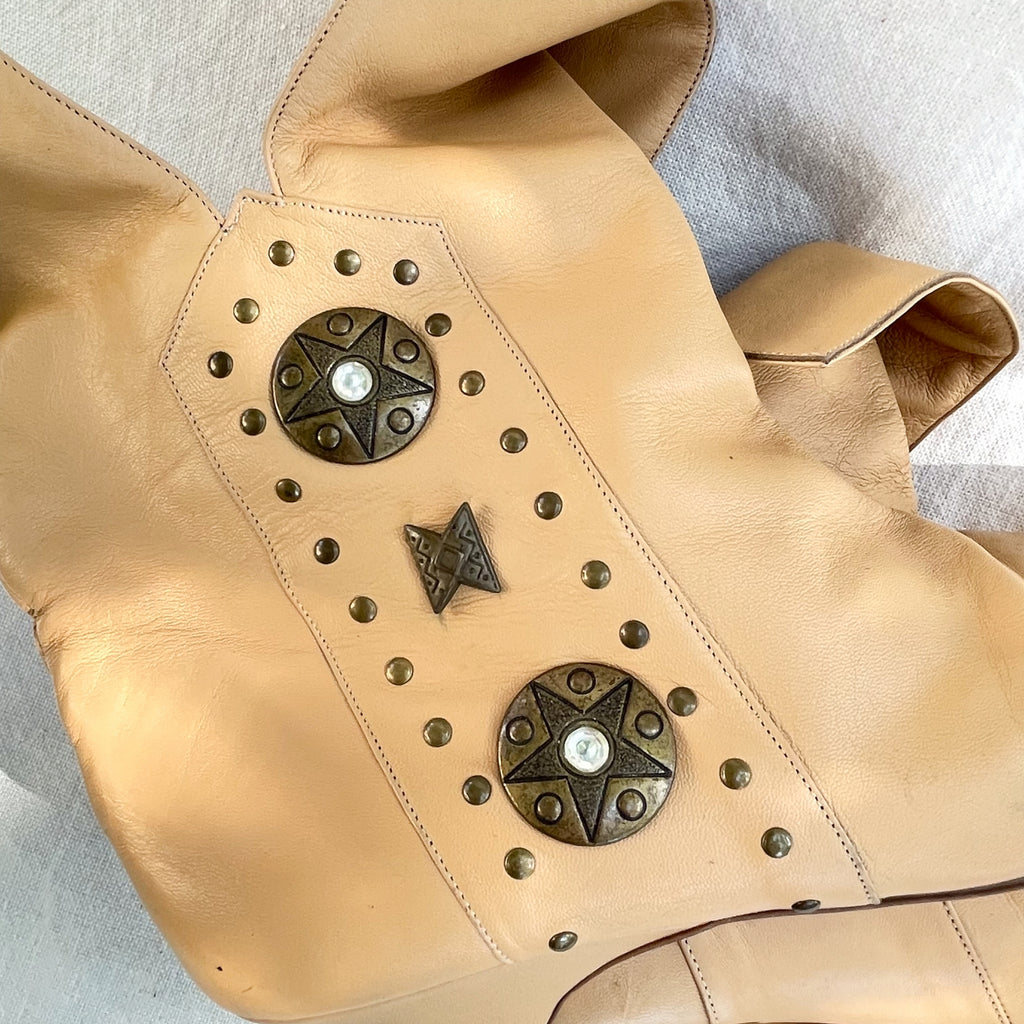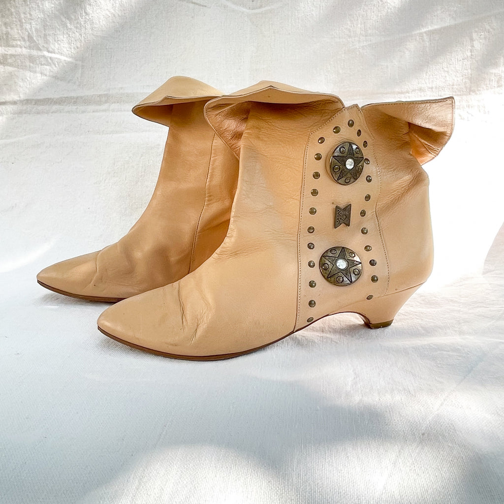 SOLD Vintage 80s Slouchy Ankle Boots, Southwestern Style W/Studs by Barbarossa 7 1/2