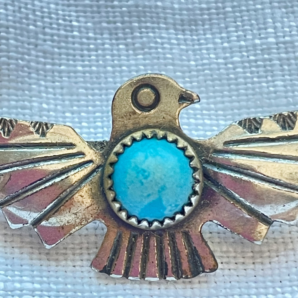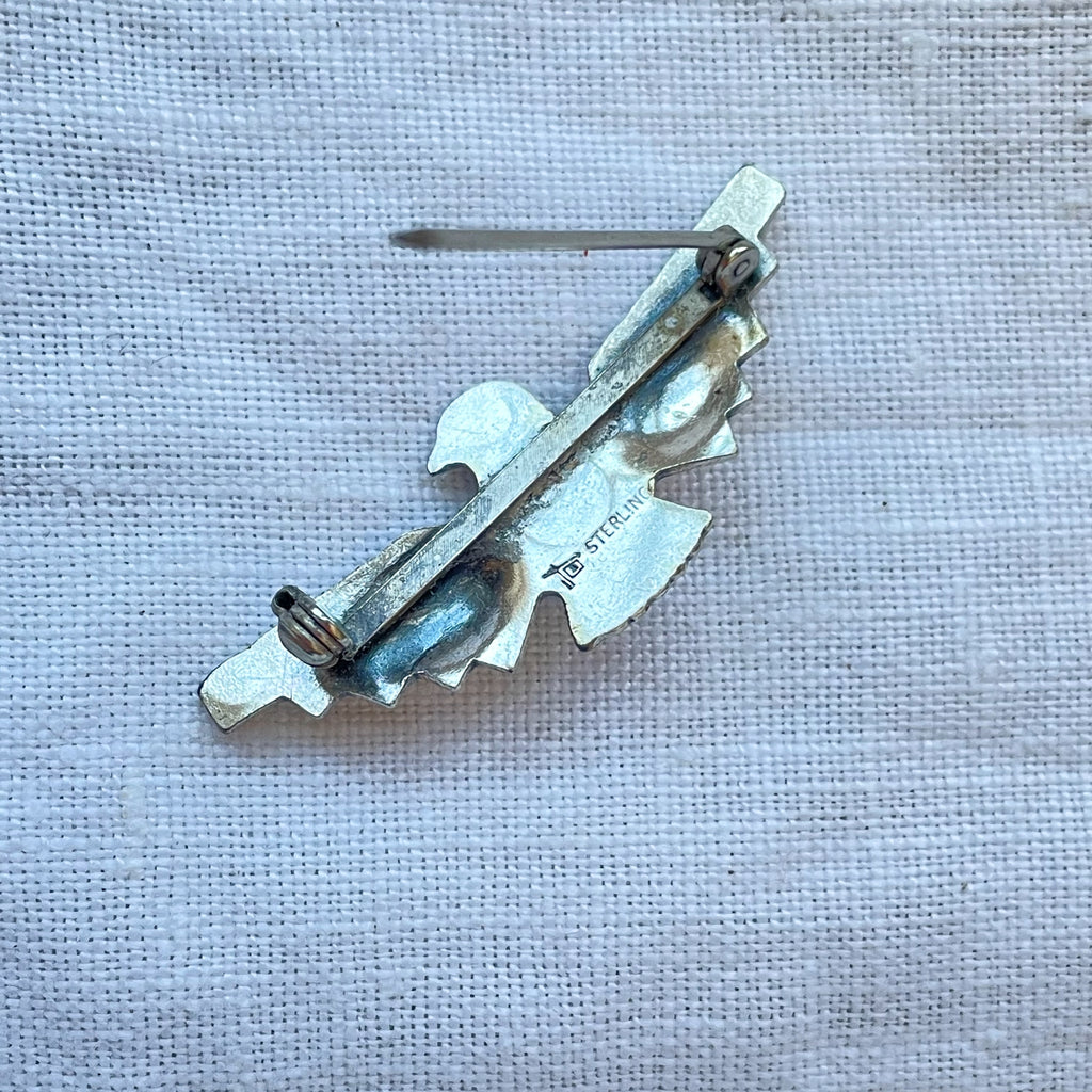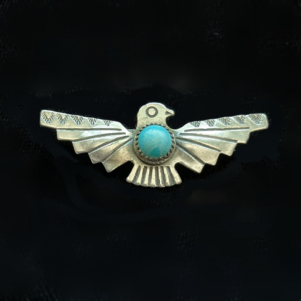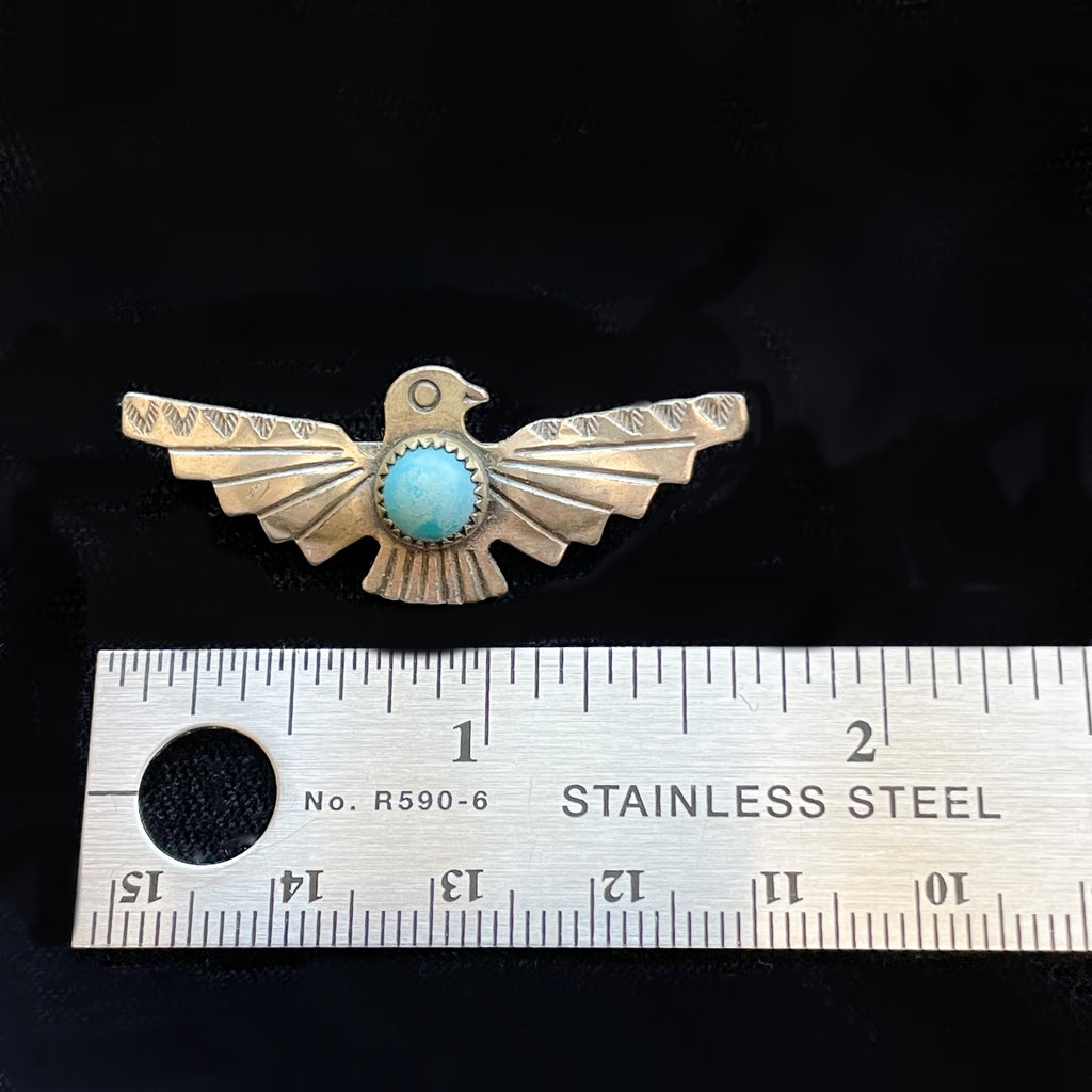 Unworn Bell Trading thunderbird brooch, on the original card.