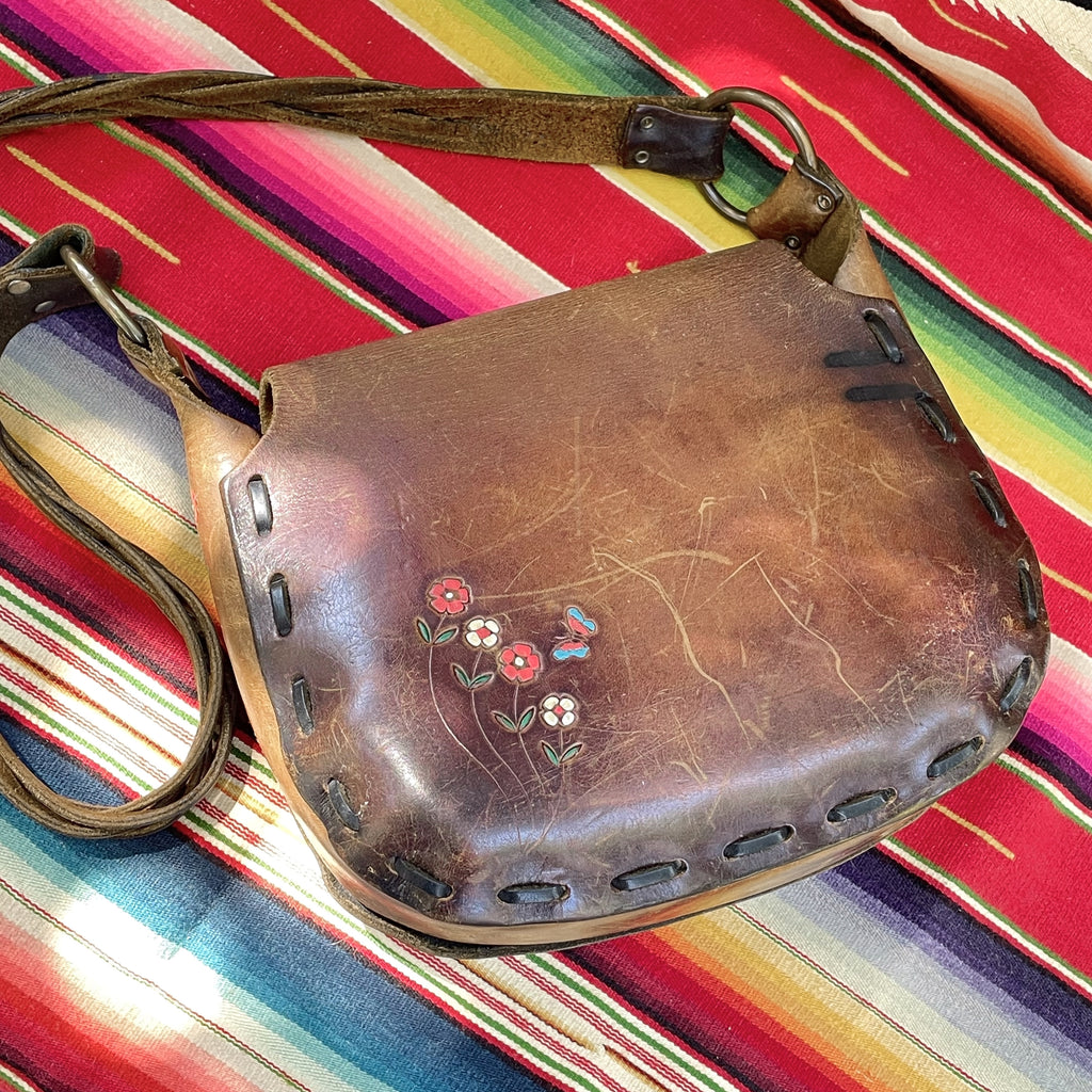 Inscribed Heather on front under the flap. Does not show on the outside of the bag.